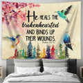 He Heals The Brokenhearted Psalm 1473 Bible Verse Tapestry Wall Art - Christian Wall Decor