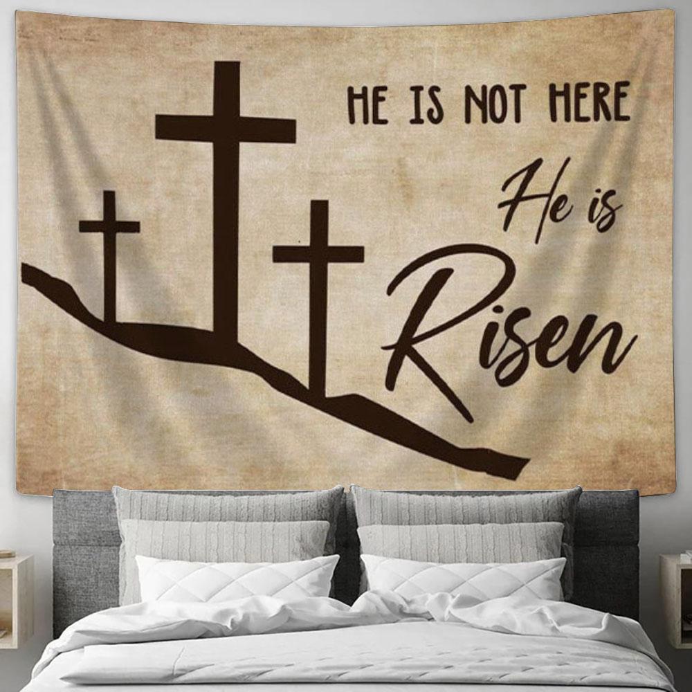 He Is Not Here He Is Risen Christian Tapestry Wall Art - - Christian Wall Decor