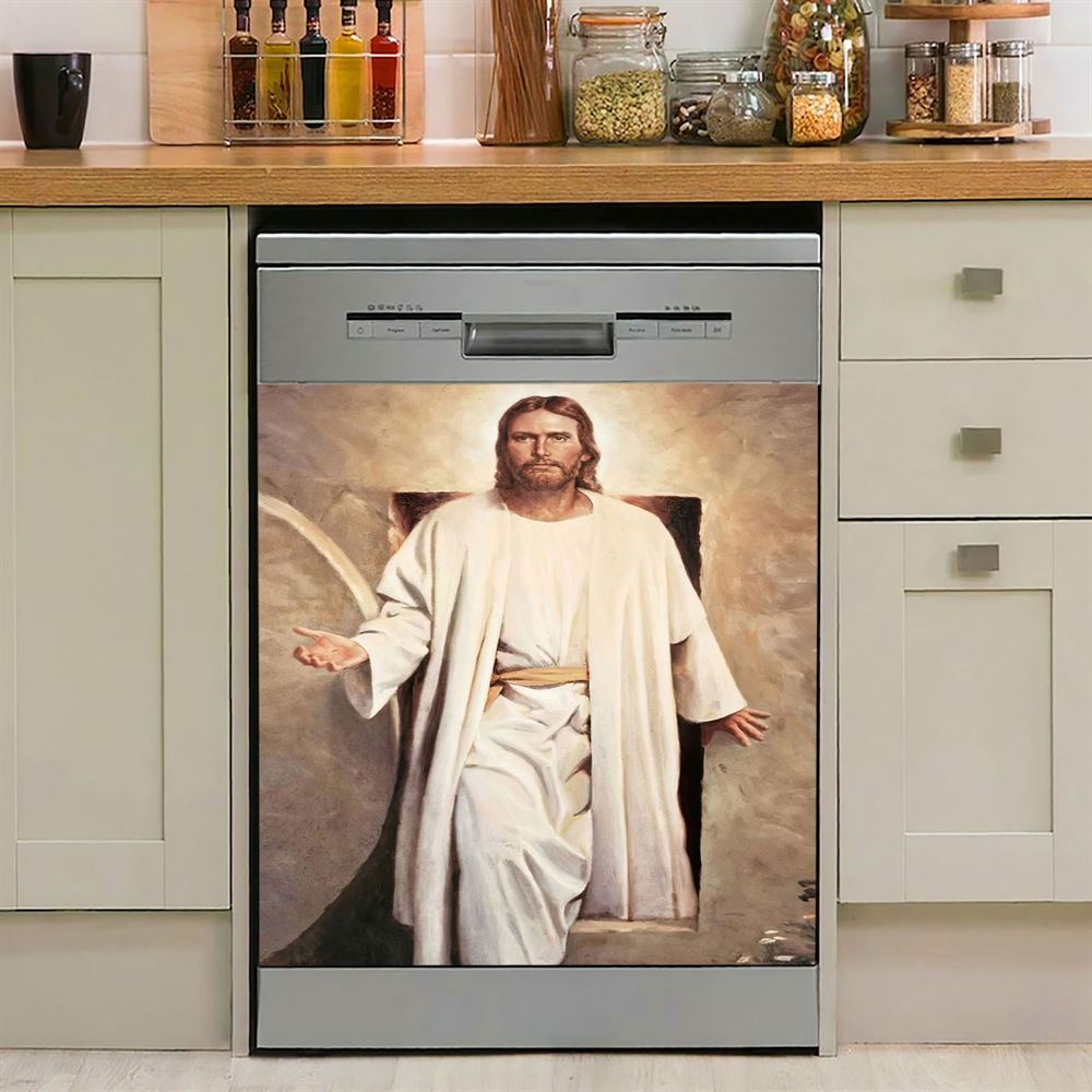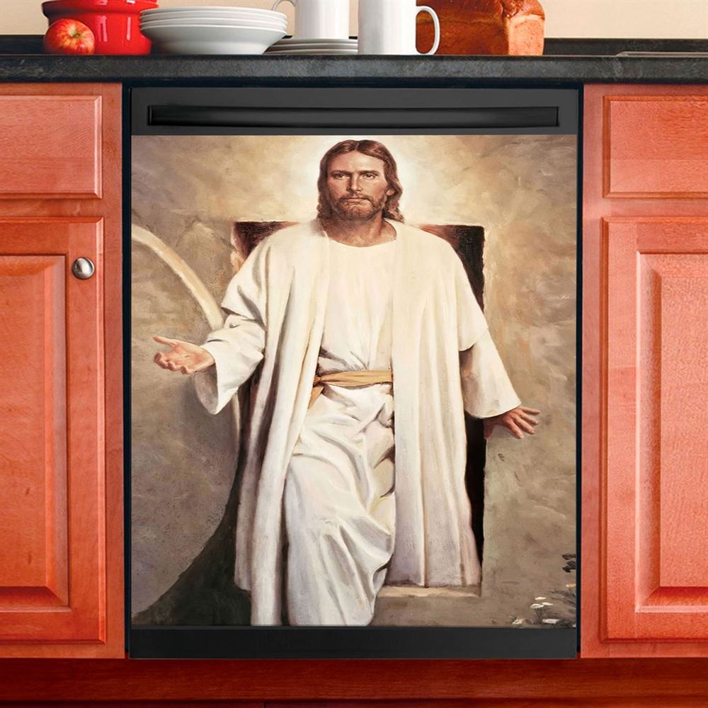 He Is Risen Cross Purple Ribbon Lily Flower Dishwasher Cover, Bible Verse Dishwasher Stickers, Christian Inspirational Kitchen Decor