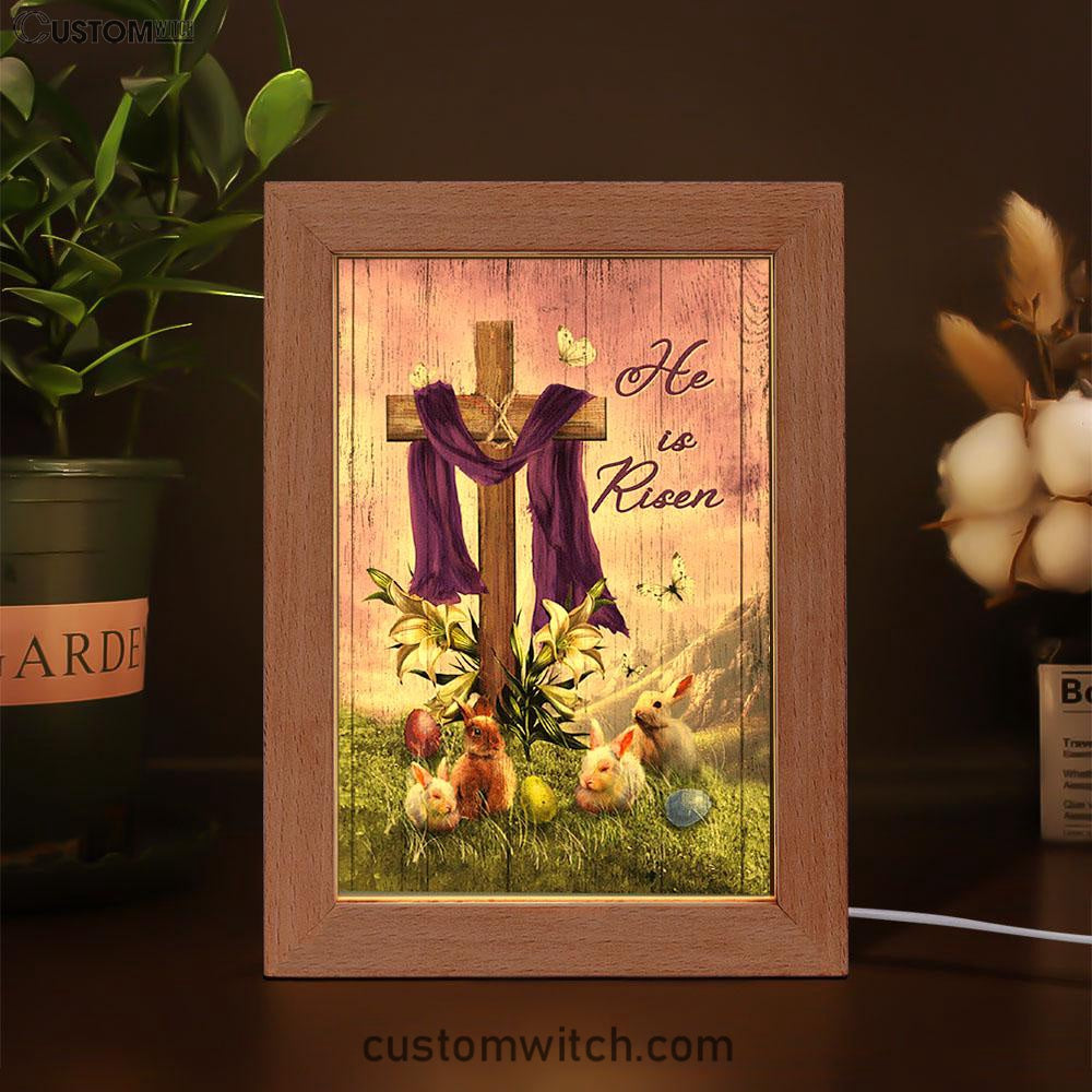 He Is Risen Easter Bunny Cross Lily Flower White Butterfly Purple Silk Frame Lamp Art - Bible Verse Art - Christian Inspirational Decor