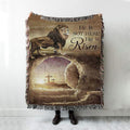 He Is Risen Woven Blanket - The Empty Tomb Lion Woven Blanket Art - Bible Verse Throw Blanket - Christian Inspirational Boho Blanket