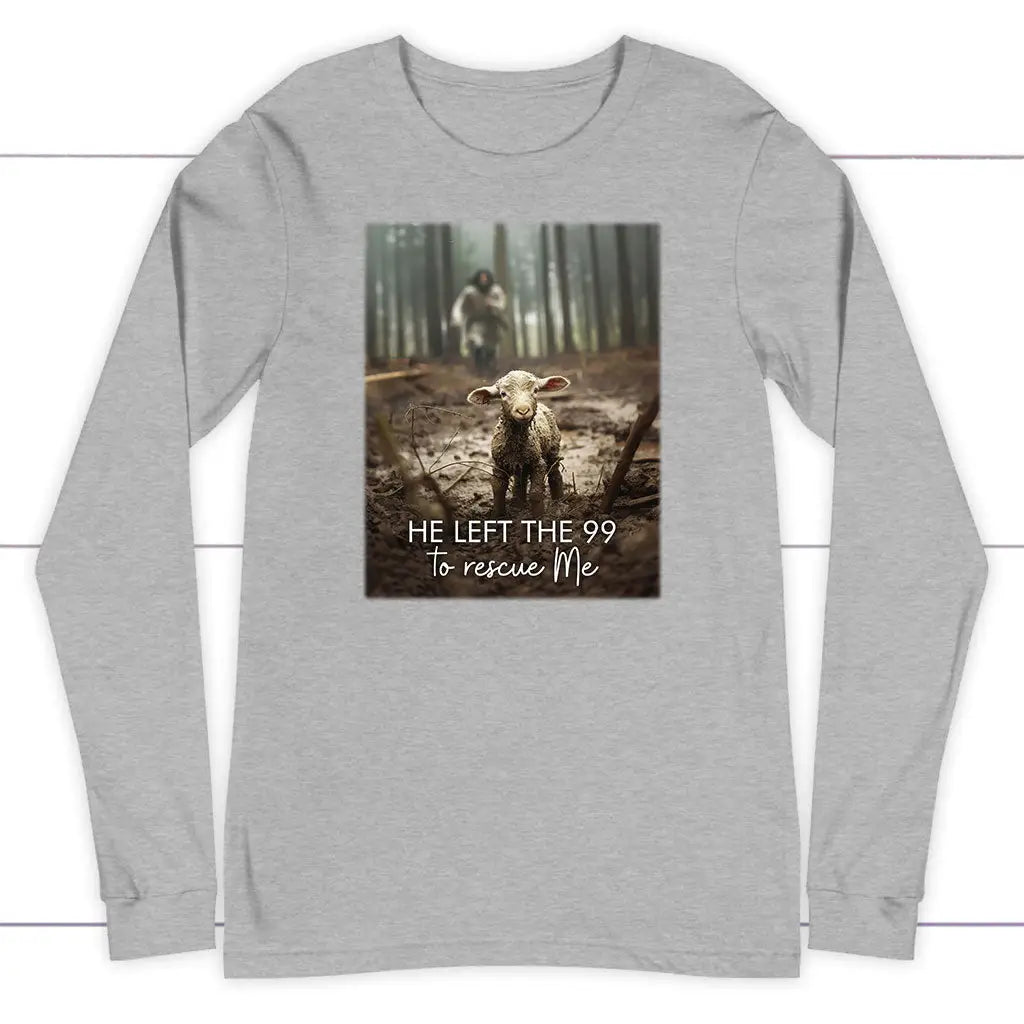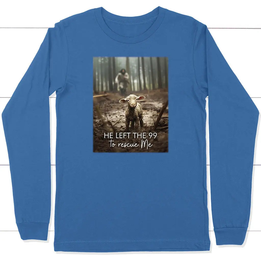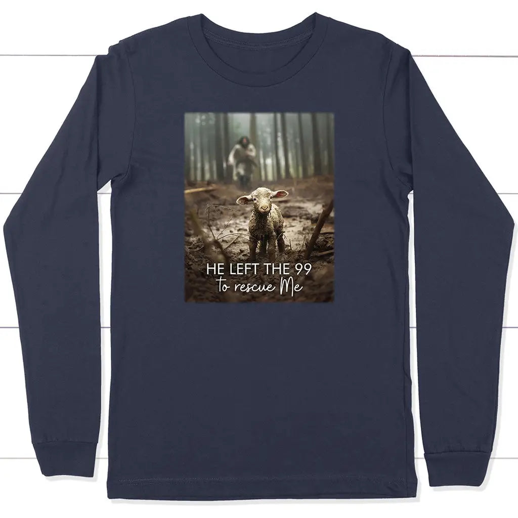 He Left the 99 to Rescue Me, Jesus and Lost Sheep, Christian Long Sleeve Shirt