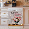 He Restores My Soul Pink Rose Vase Bible Dishwasher Cover, Bible Verse Dishwasher Stickers, Christian Inspirational Kitchen Decor
