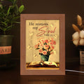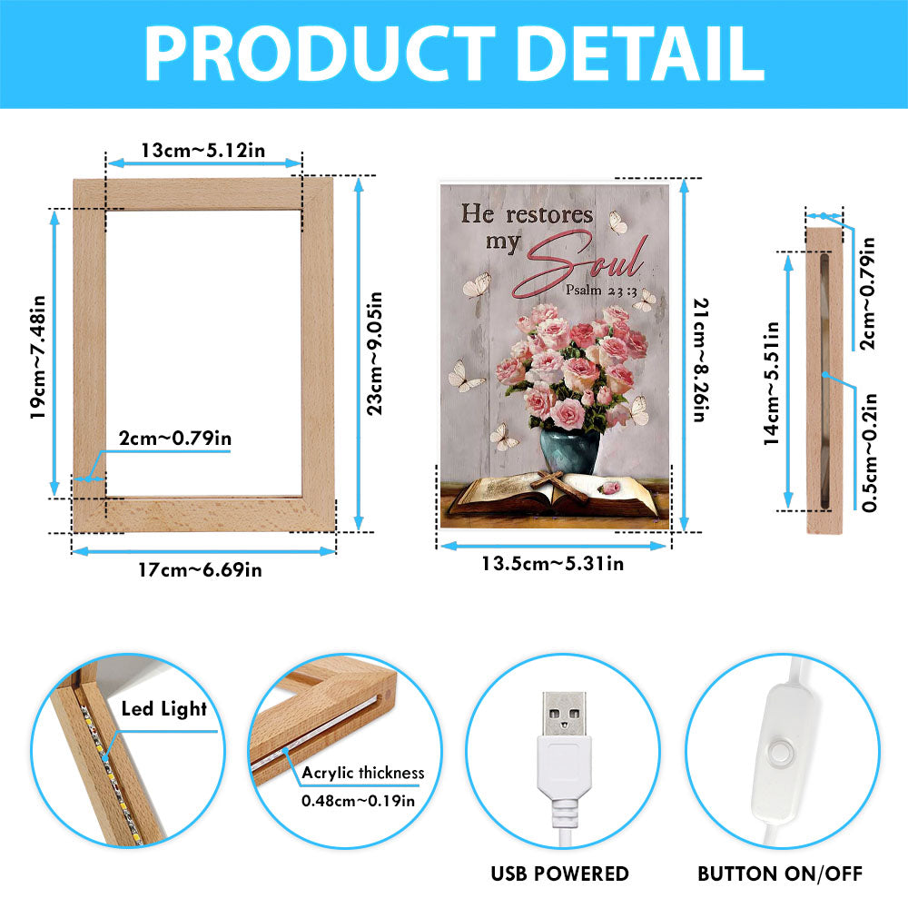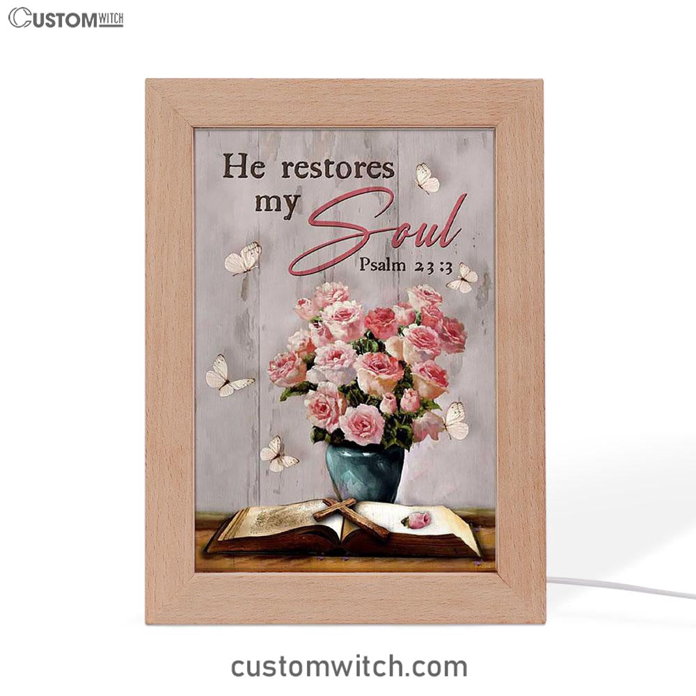 He Restores My Soul Pink Rose Vase Bible Frame Lamp Art - Bible Verse Art - Christian Inspirational Decor