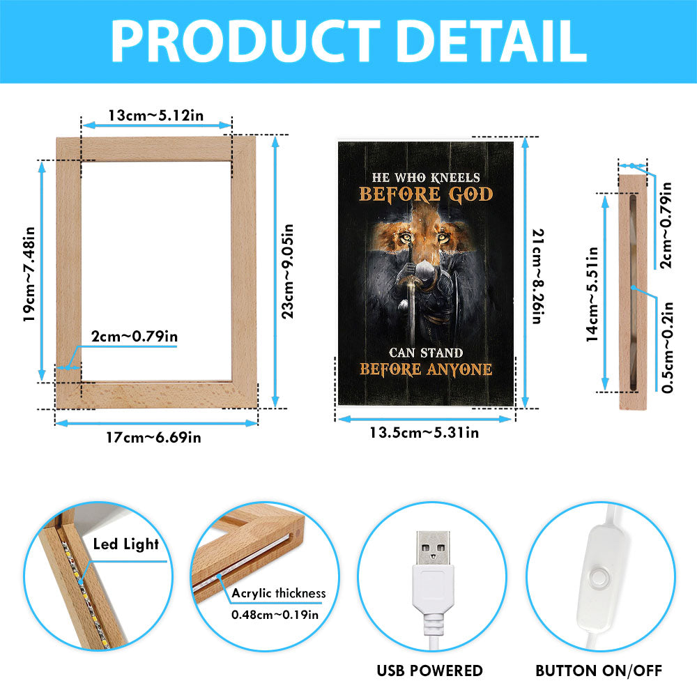 He Who Kneels Before God Can Stand Before Anyone Frame Lamp Art - Bible Verse Art - Christian Inspirational Decor