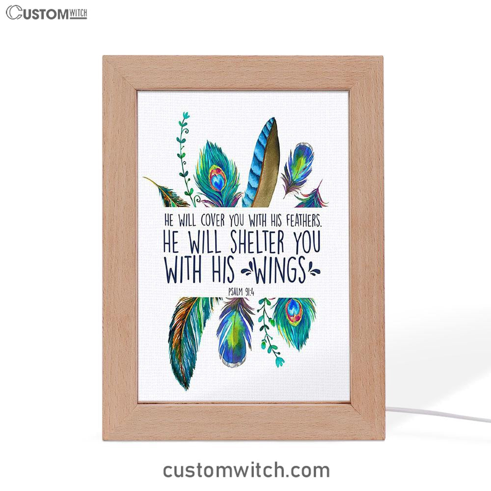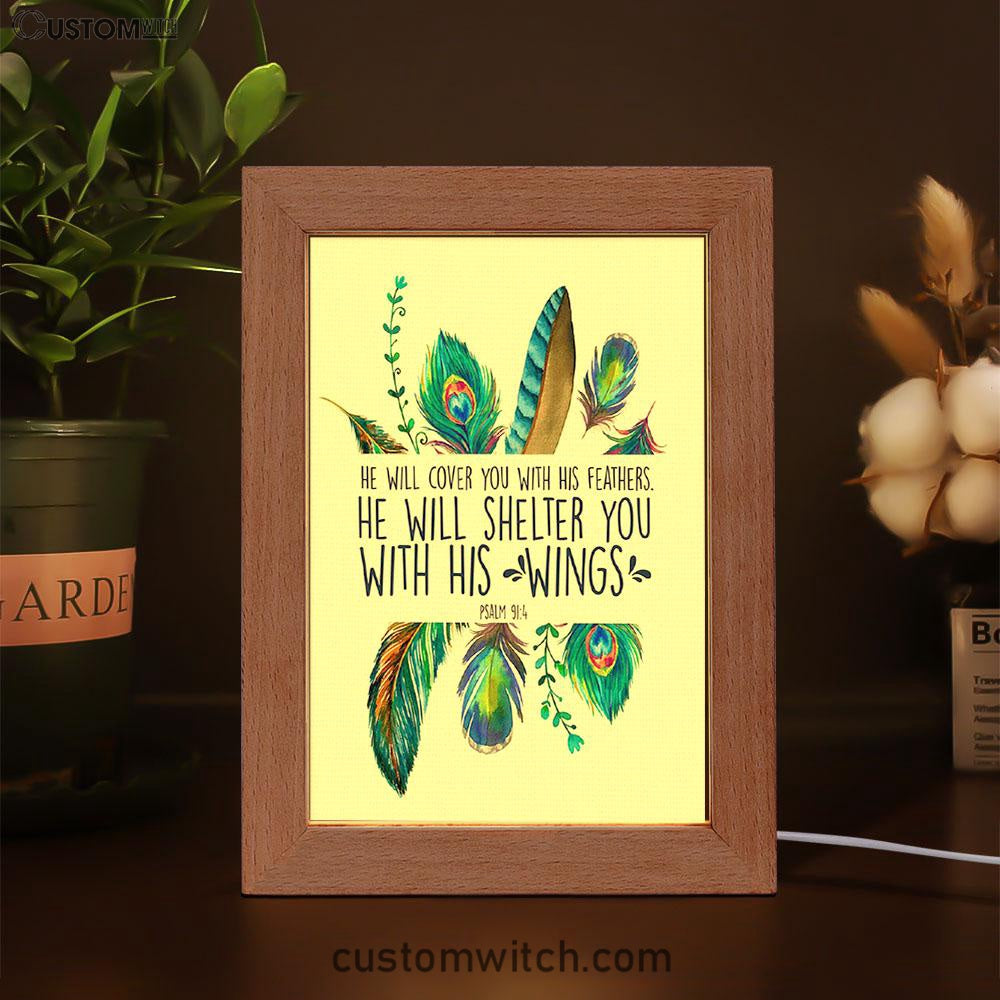 He Will Cover You With His Feathers Art Frame Lamp - Christian Night Light Decor