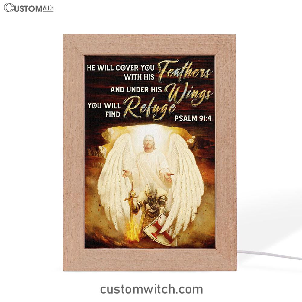 He Will Cover You With His Feathers Frame Lamp - Jesus Angel Wings Warrior Frame Lamp Art - Christian Art Decor - Religious Gifts Night Light