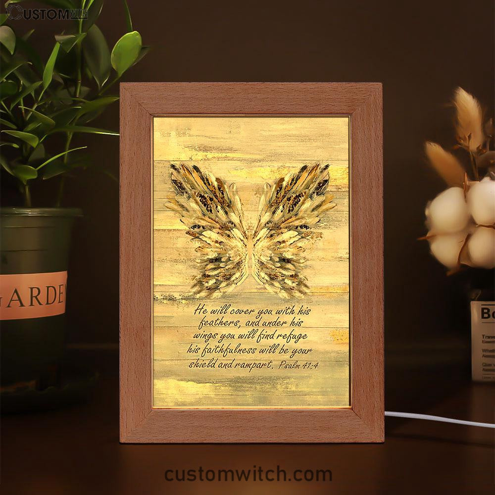 He Will Cover You With This Feathers Abstract Wings Frame Lamp - Christian Art - Religious Home Decor