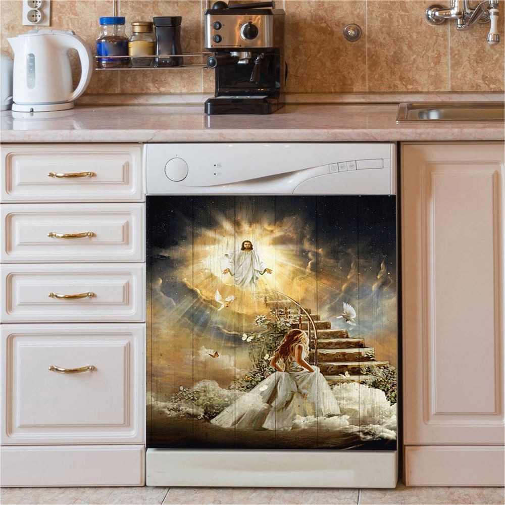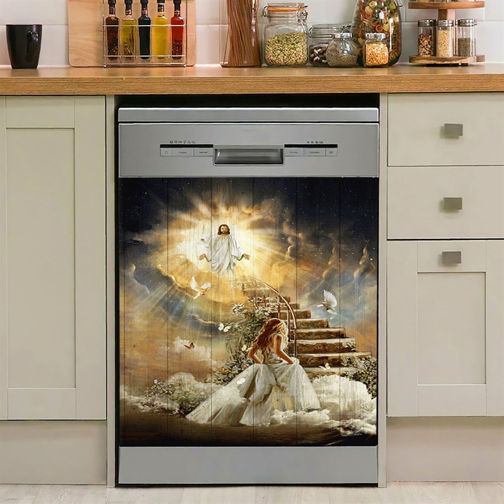 Heaven Holy Spirit Dove Stair To Heaven Welcome Home Dishwasher Cover, Christian Dishwasher Stickers, Bible Verse Kitchen Decor