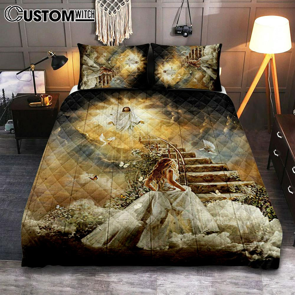Heaven Holy Spirit Dove Stair To Heaven Welcome Home Quilt Bedding Set Bedroom - Christian Quilt Bedding Set Prints - Bible Verse Quilt Bedding Set Art