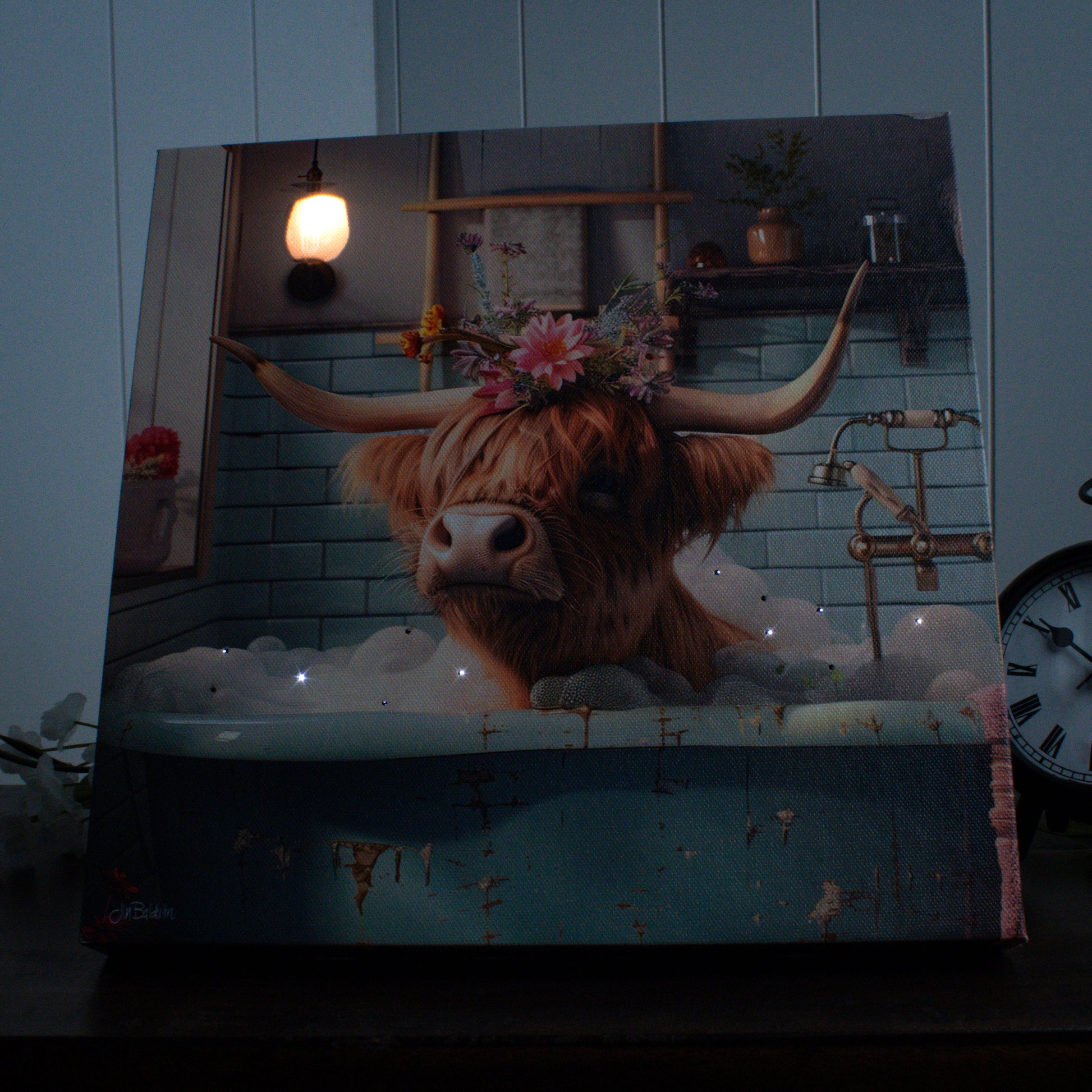 Highland Cow Bath 10x10 Lighted Fiber Optic Canvas