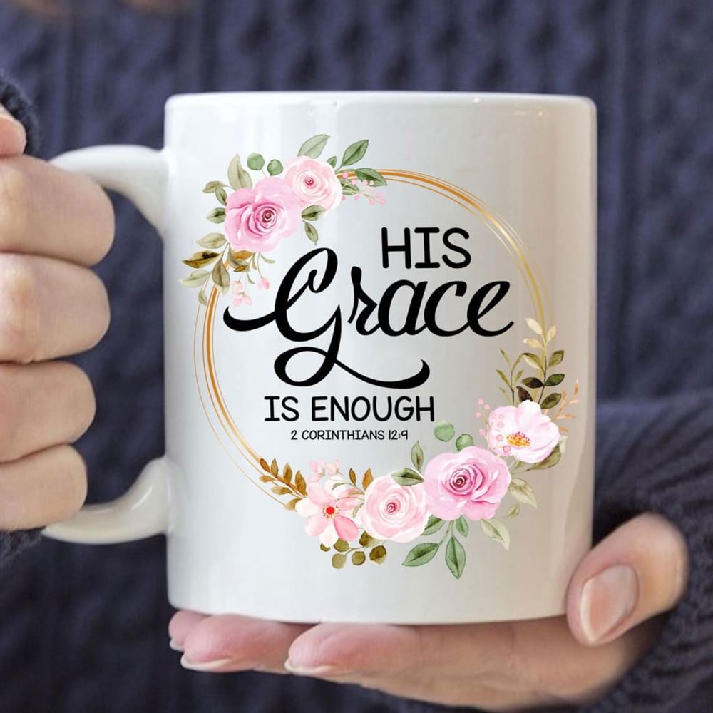 His Grace Is Enough 2 Corinthians 129, Floral Christian Coffee Mug, Christian Mug, Bible Mug, Faith Gift, Encouragement Gift