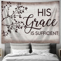 His Grace Is Sufficient Christian Tapestry Wall Art - Christian Wall Decor