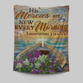 His Mercies Are New Every Morning Boat Flower Cross Tapestry Wall Art - Christian Wall Art Decor - Religious Tapestries Wall Hanging Prints