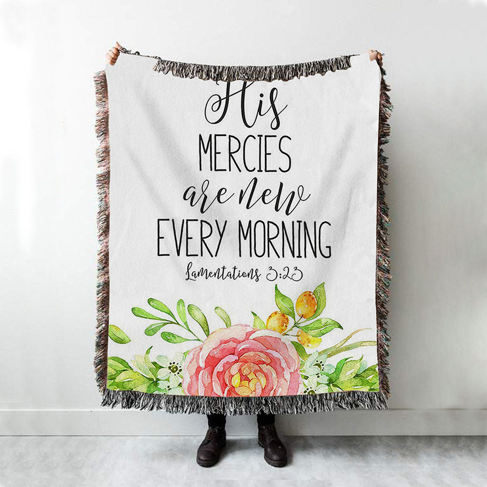 His Mercies Are New Every Morning Lamentations 3 23 Woven Throw Blanket - Christian Woven Throw Blanket Decor
