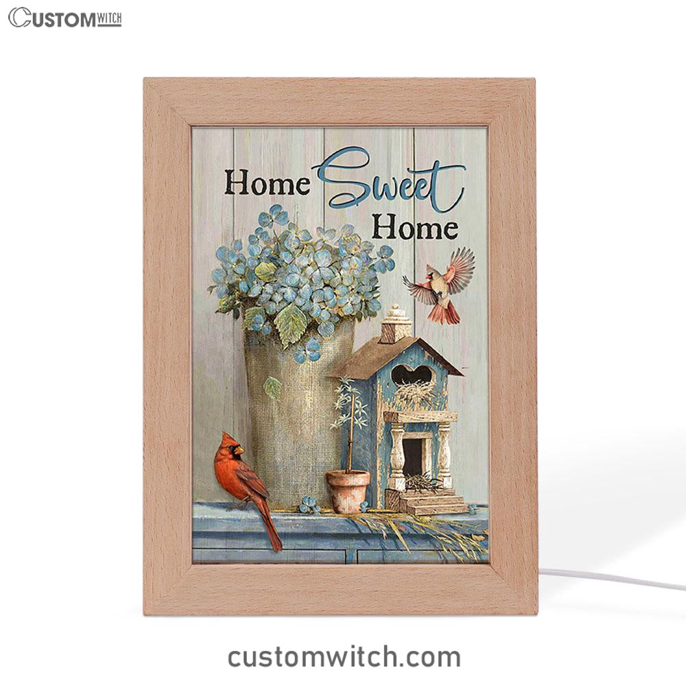 Home Sweet Home Blue Hydrangea Red Cardinals Frame Lamp Art - Bible Verse Art - Christian Inspirational Decor
