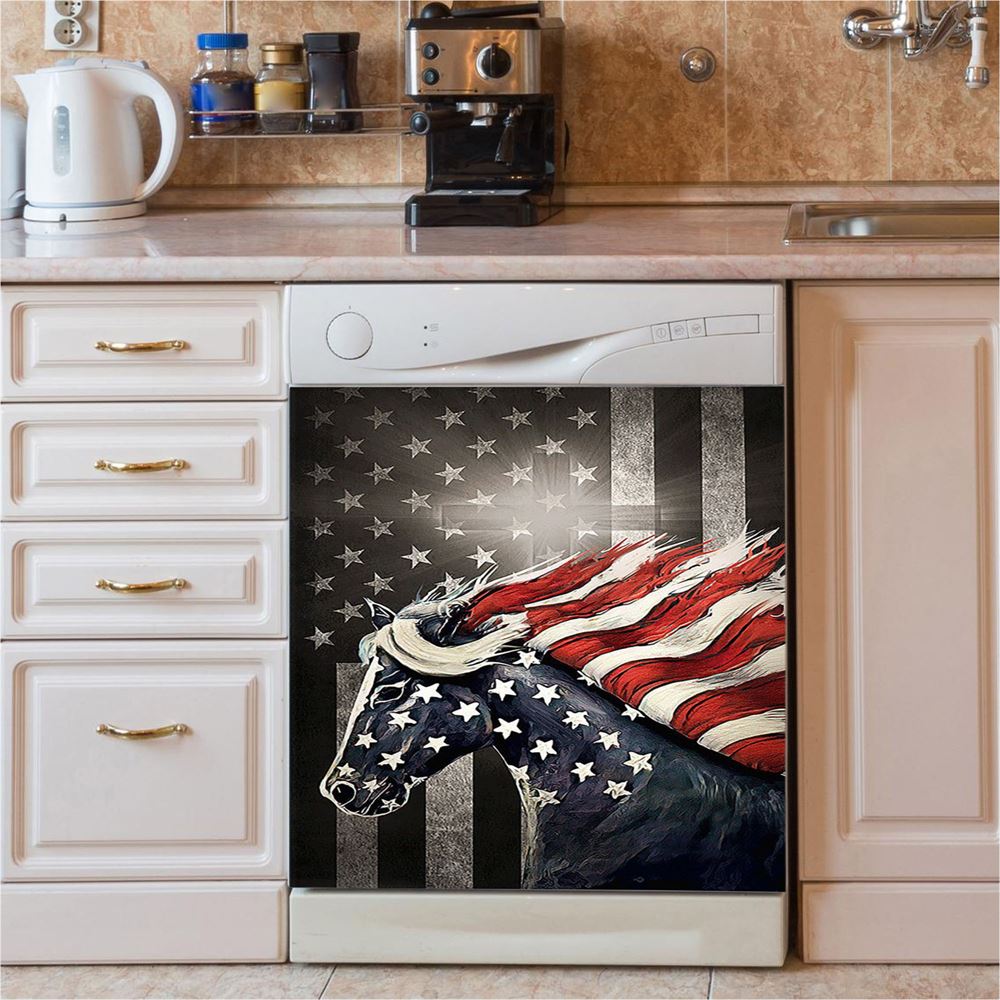 Horse Us Pattern Black Background Us Flag Dishwasher Cover, Christian Dishwasher Stickers, Bible Verse Kitchen Decor