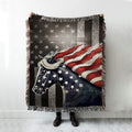 Horse Us Pattern Black Background Us Flag Woven Blanket Woven Throw Blanket - Christian Woven Blanket Prints - Bible Verse Woven Blanket Art