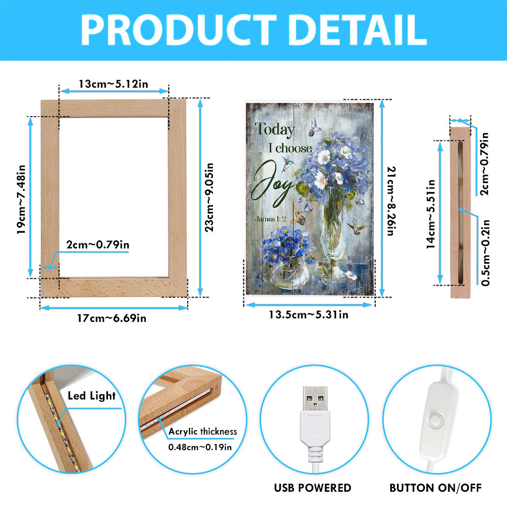 Hummingbird Baby Blue Flower Today I Choose Joy Frame Lamp Art - Christian Art - Bible Verse Art - Religious Home Decor