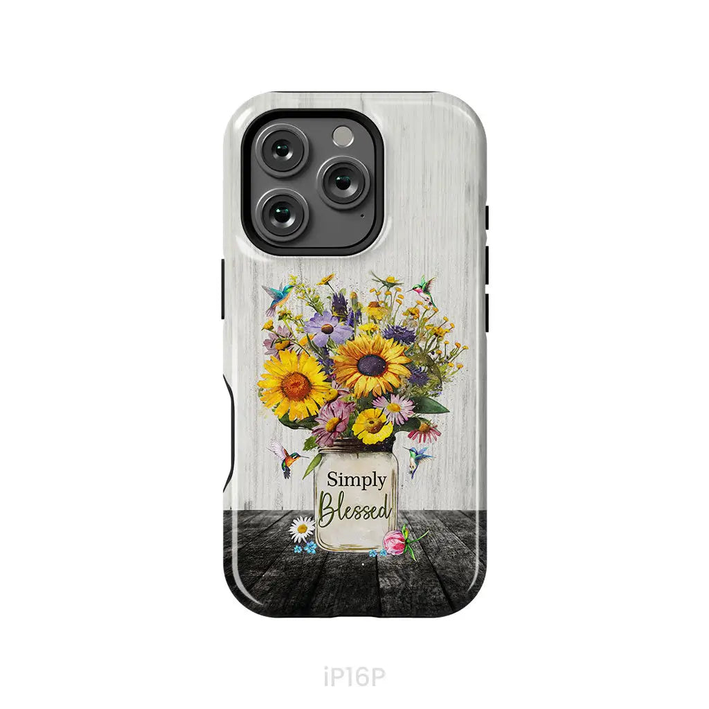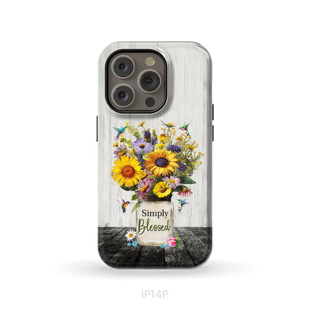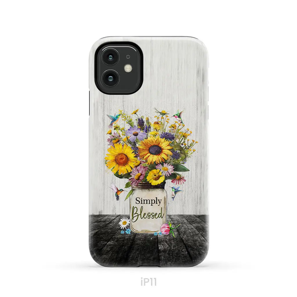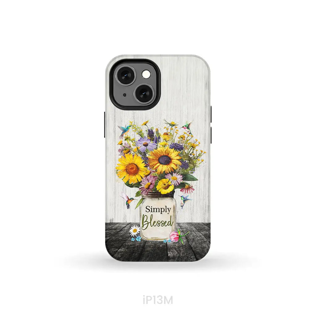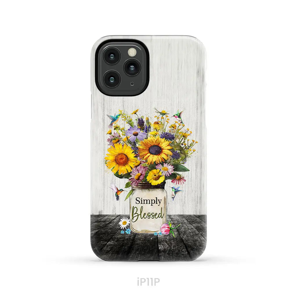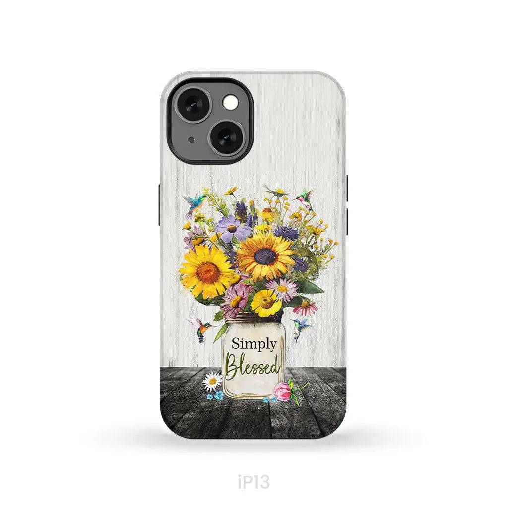 Simply Blessed, Hummingbirds and Flowers in Vase, Christian Phone Case