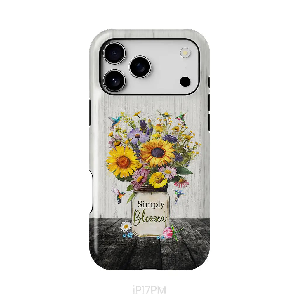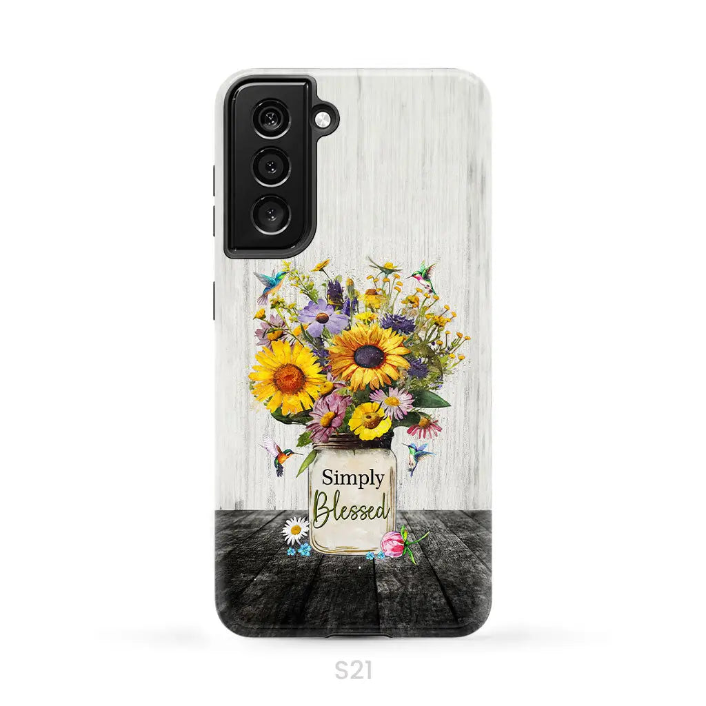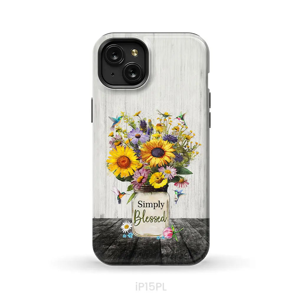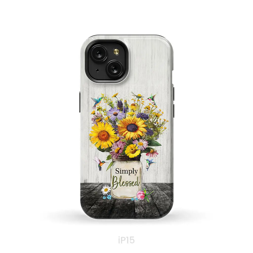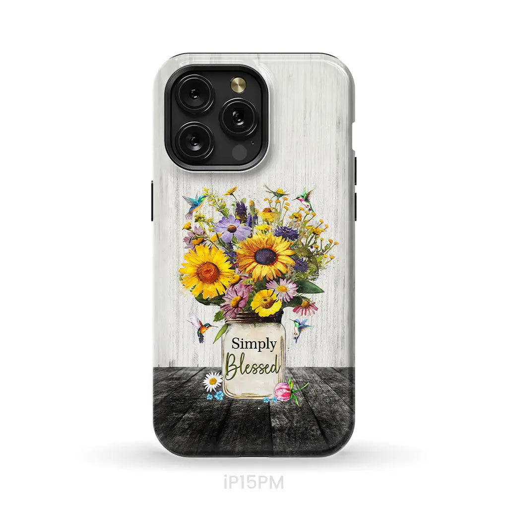 Simply Blessed, Hummingbirds and Flowers in Vase, Christian Phone Case