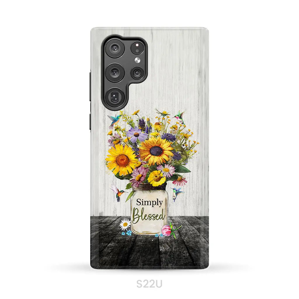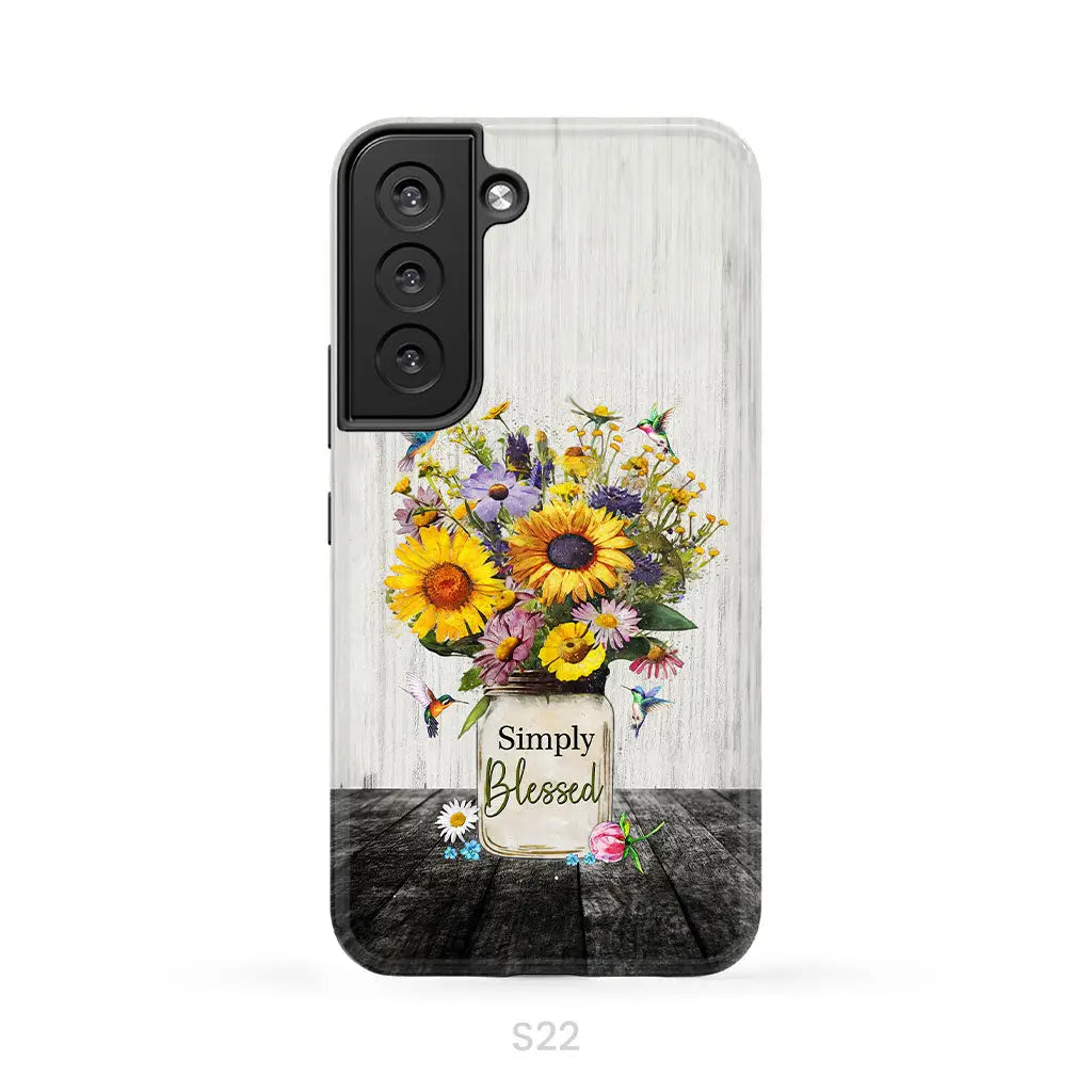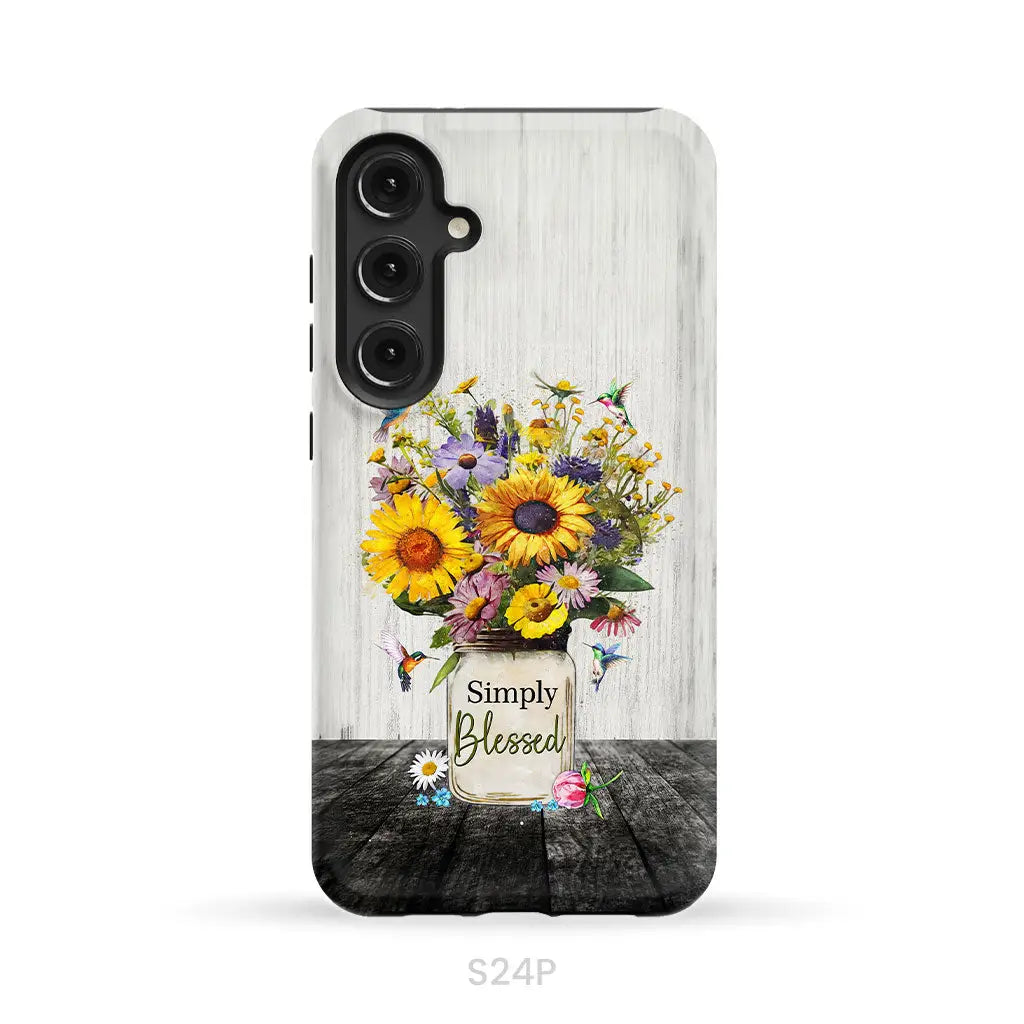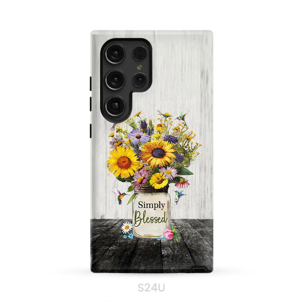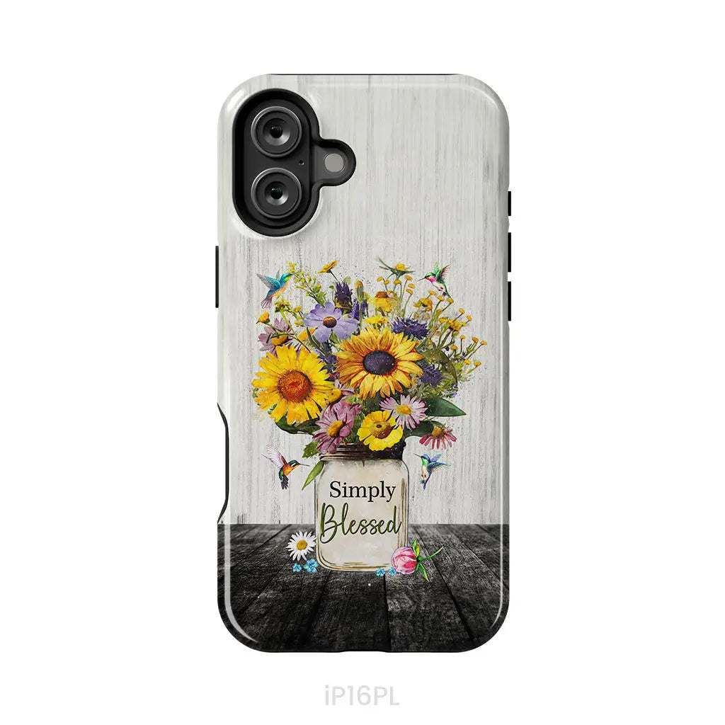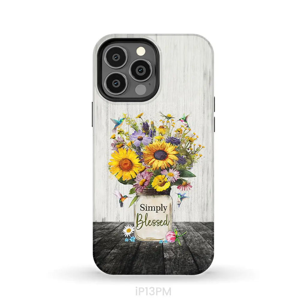 Simply Blessed, Hummingbirds and Flowers in Vase, Christian Phone Case