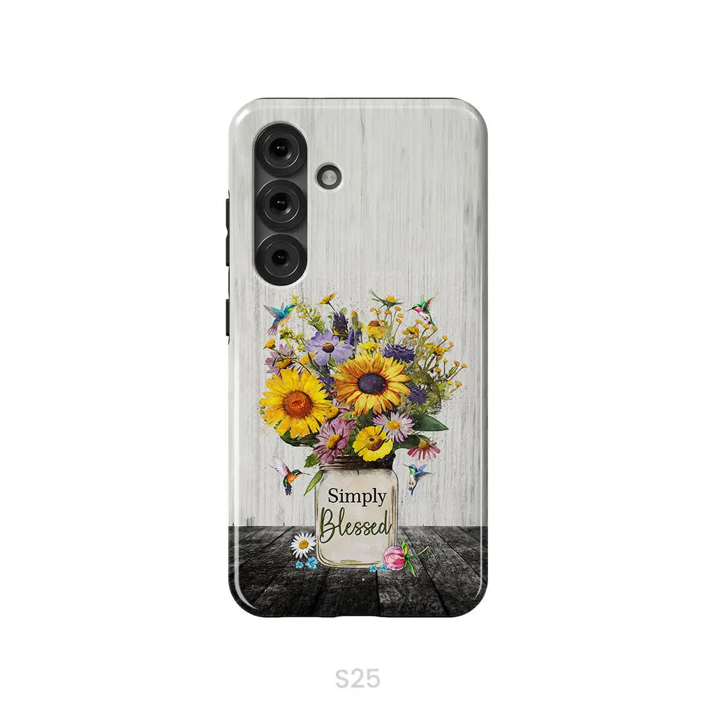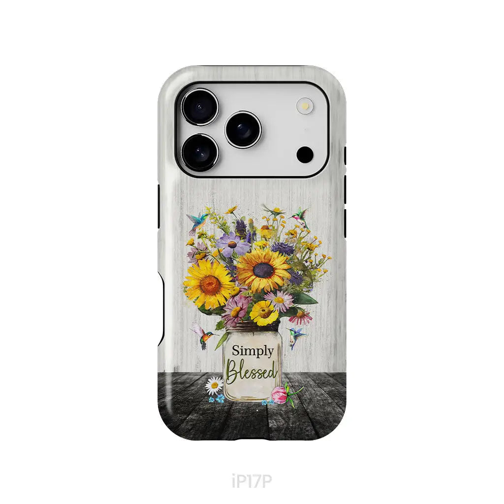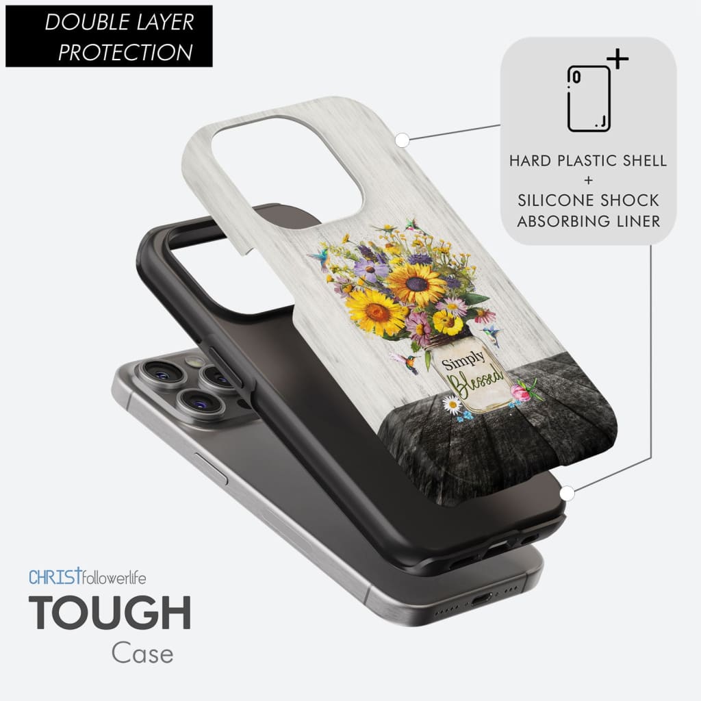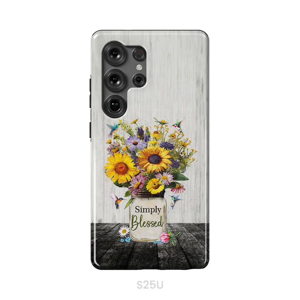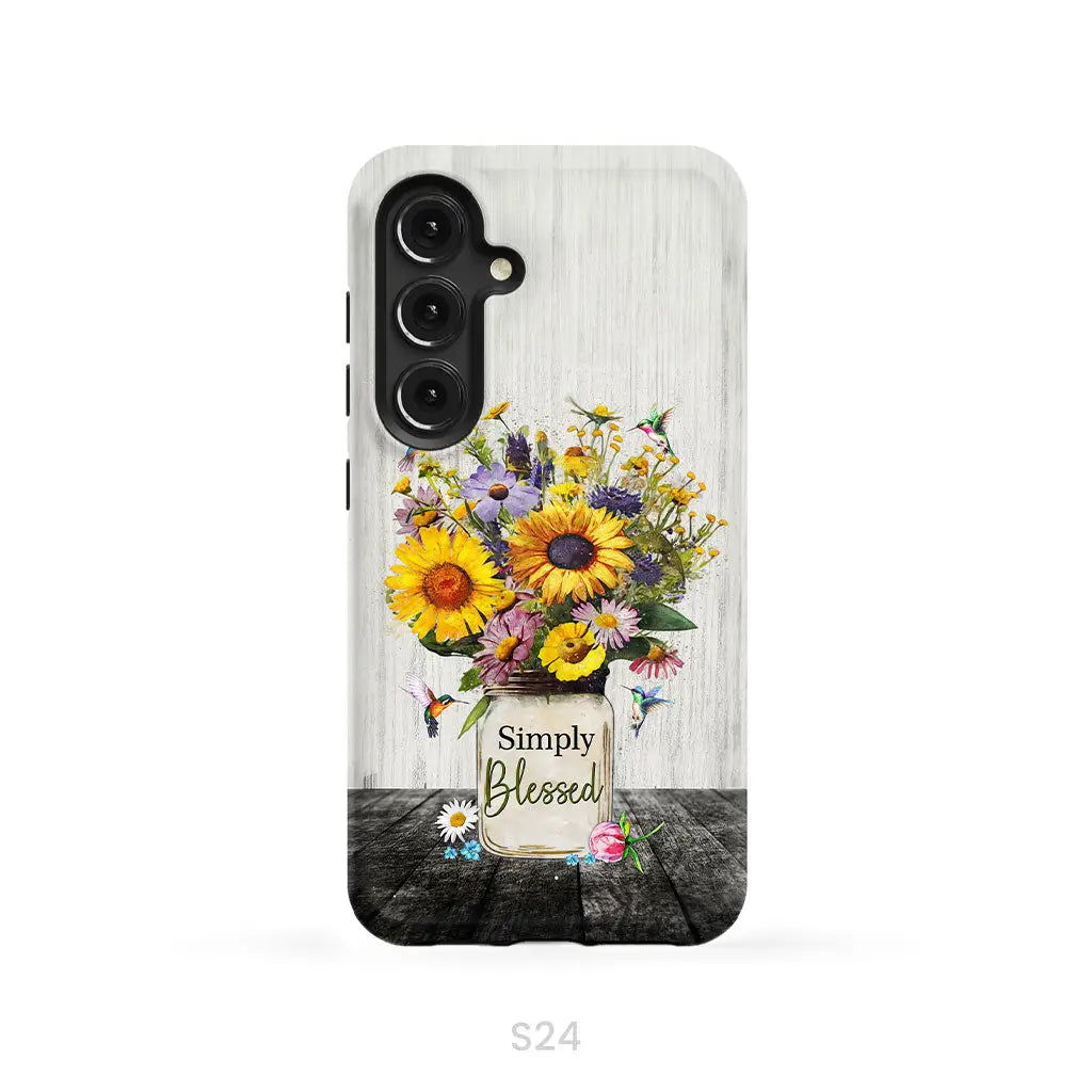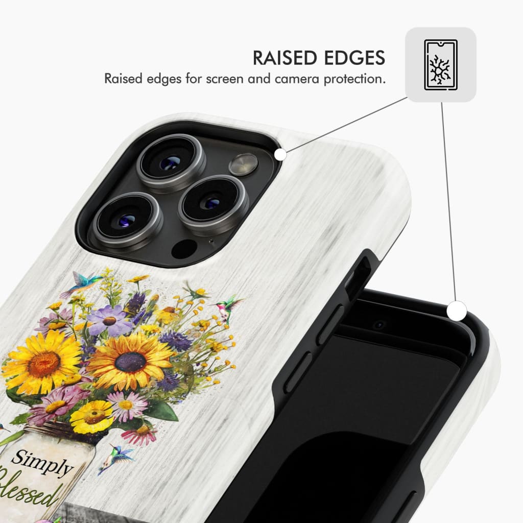 Simply Blessed, Hummingbirds and Flowers in Vase, Christian Phone Case