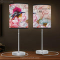 Hummingbird, Pink Camellia Flower, Be Still And Know That I Am God Table Lamp