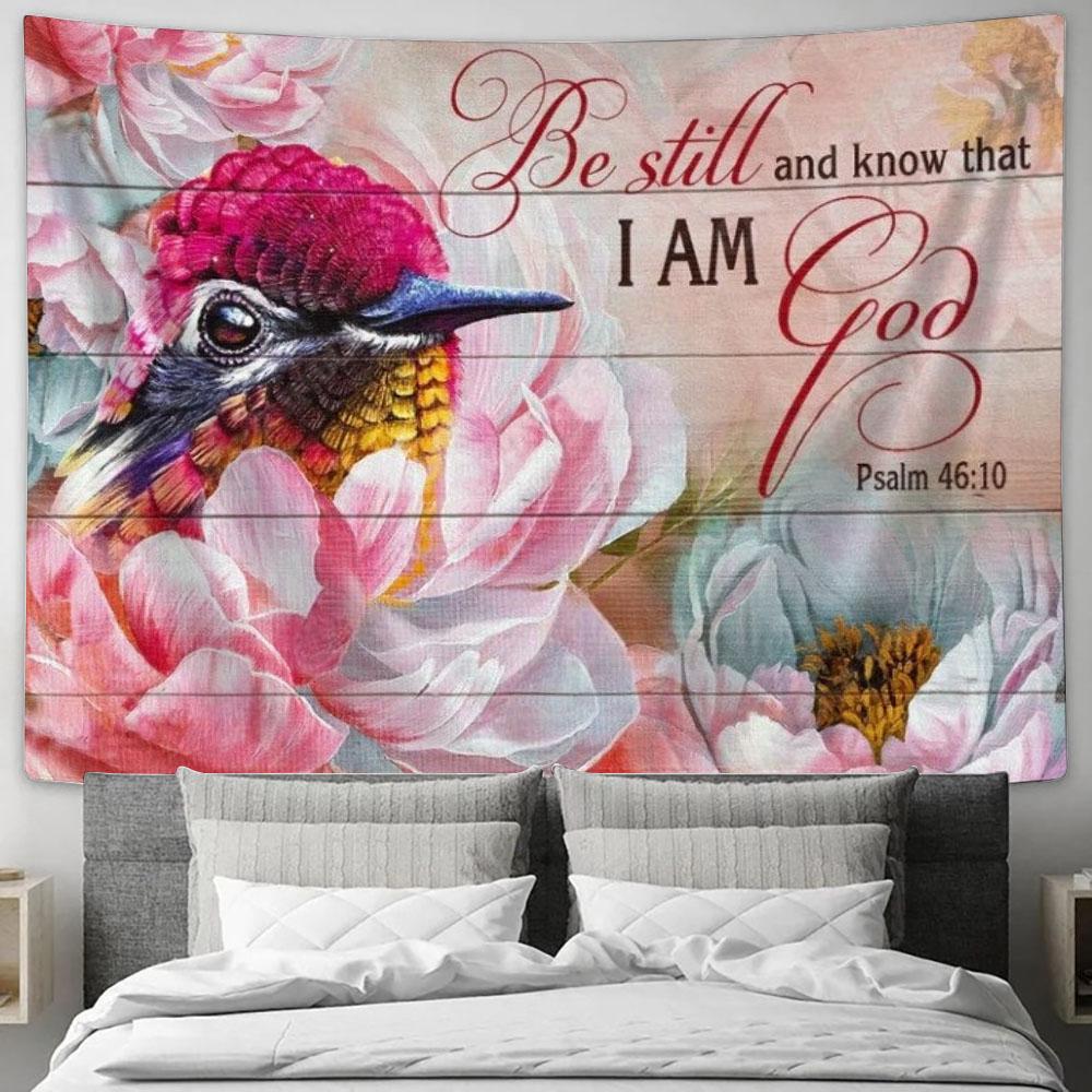 Hummingbird, Pink Camellia Flower, Be Still And Know That I Am God Tapestry, Tapestries for Living Room Bedroom