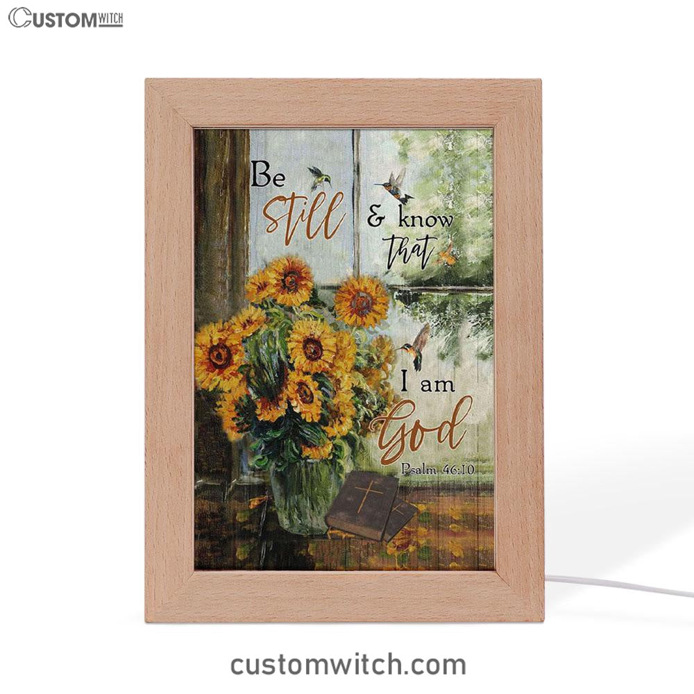 Hummingbird Sunflower Be Still And Know That I Am God Psalm 4610 Frame Lamp Prints - Bible Verse Decor - Scripture Art