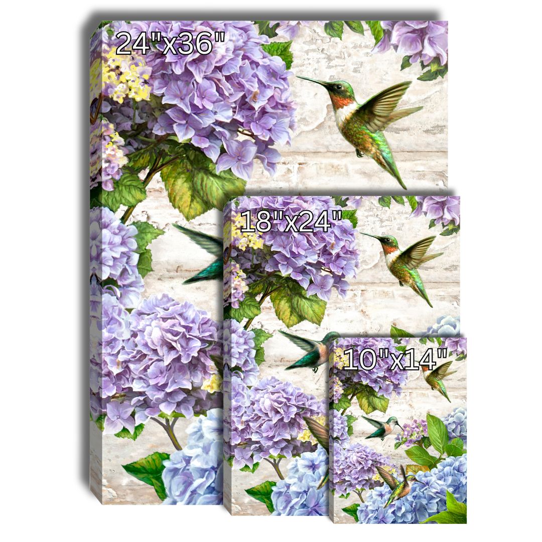 Hummingbirds and Hydrangeas Canvas Wall Art
