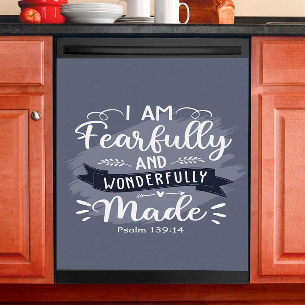 I Am Fearfully And Wonderfully Made Psalm 13914 Dishwasher Cover, Inspirational Dishwasher Stickers, Christian Kitchen Decor