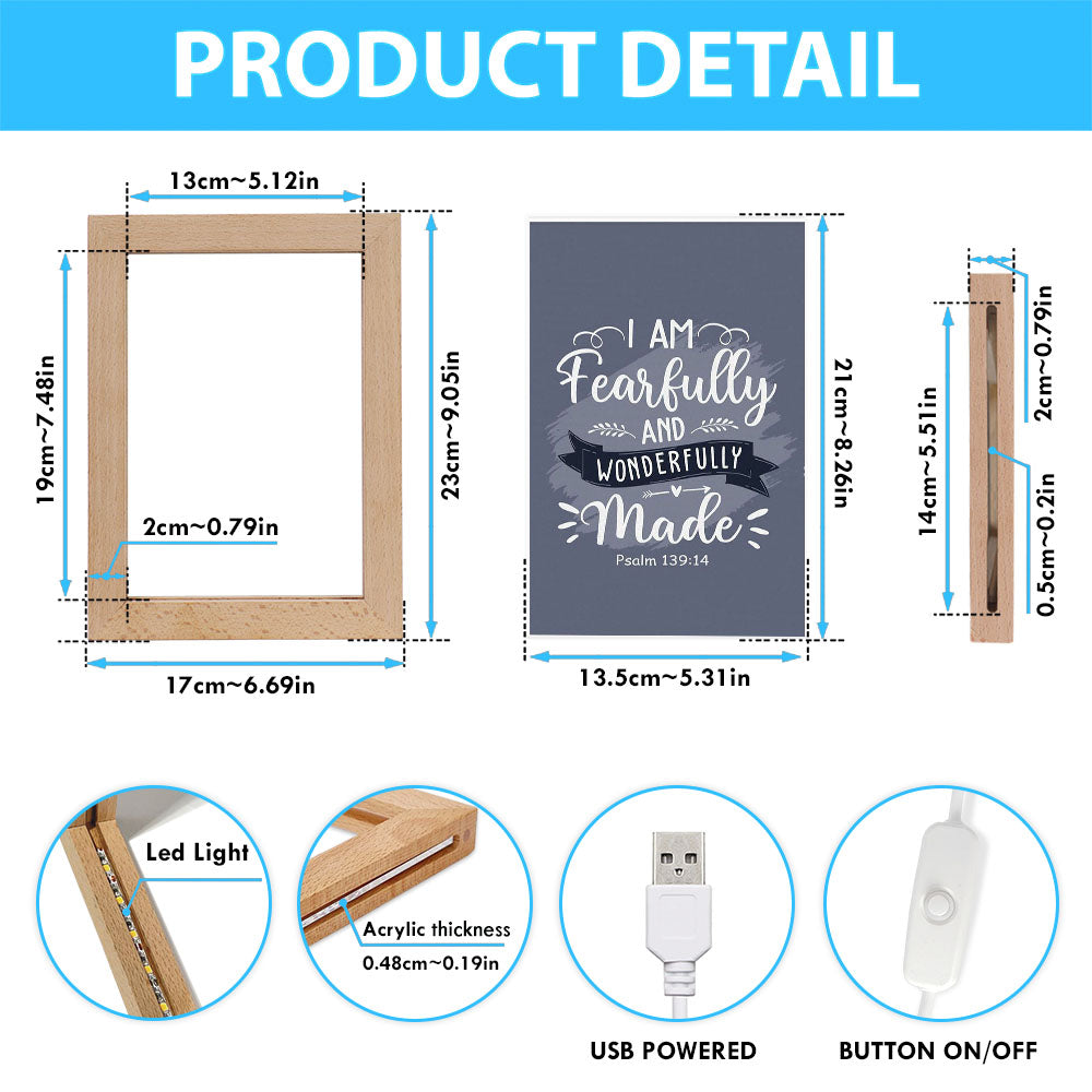 I Am Fearfully And Wonderfully Made Psalm 13914 Frame Lamp Art - Inspirational Frame Lamp Art - Christian Decor
