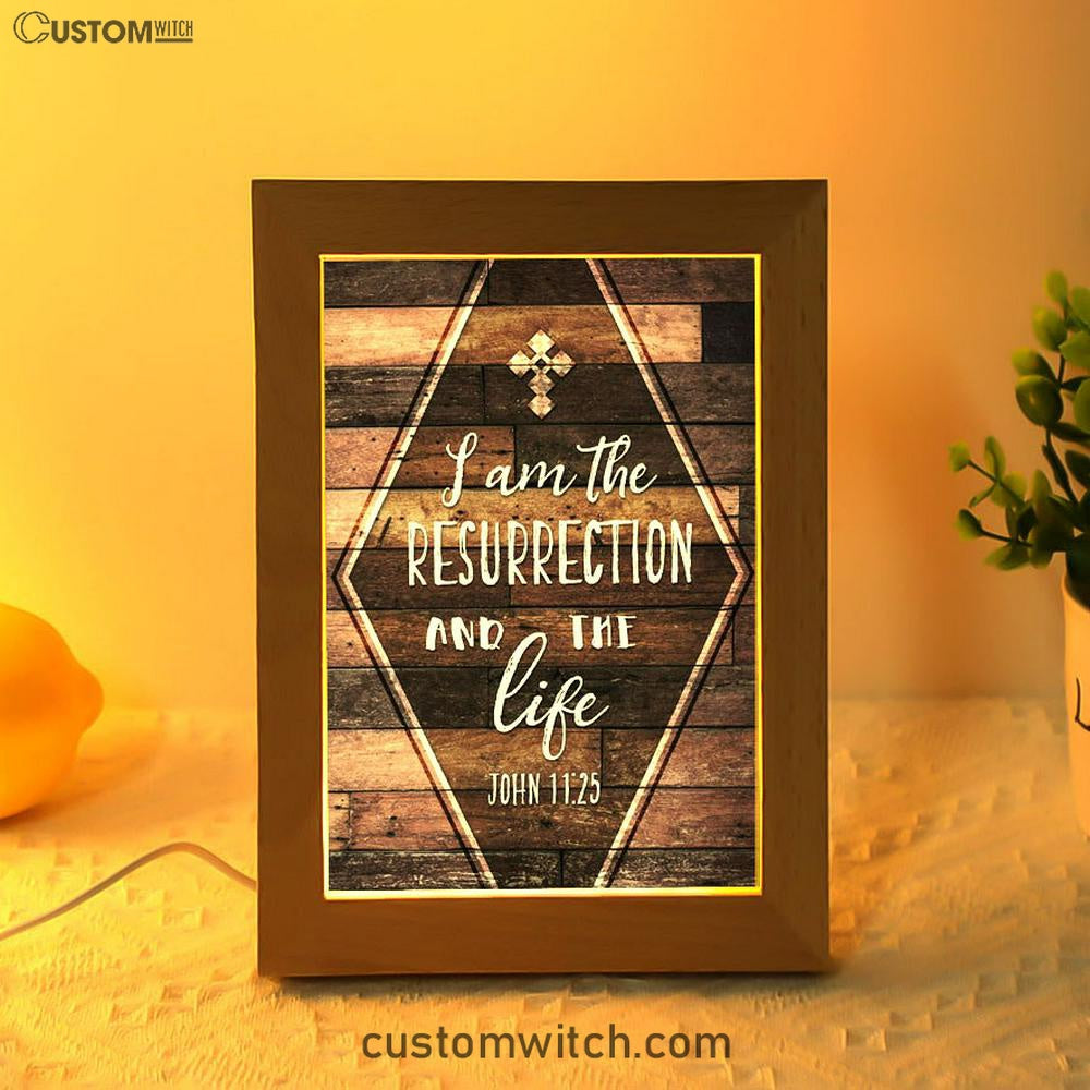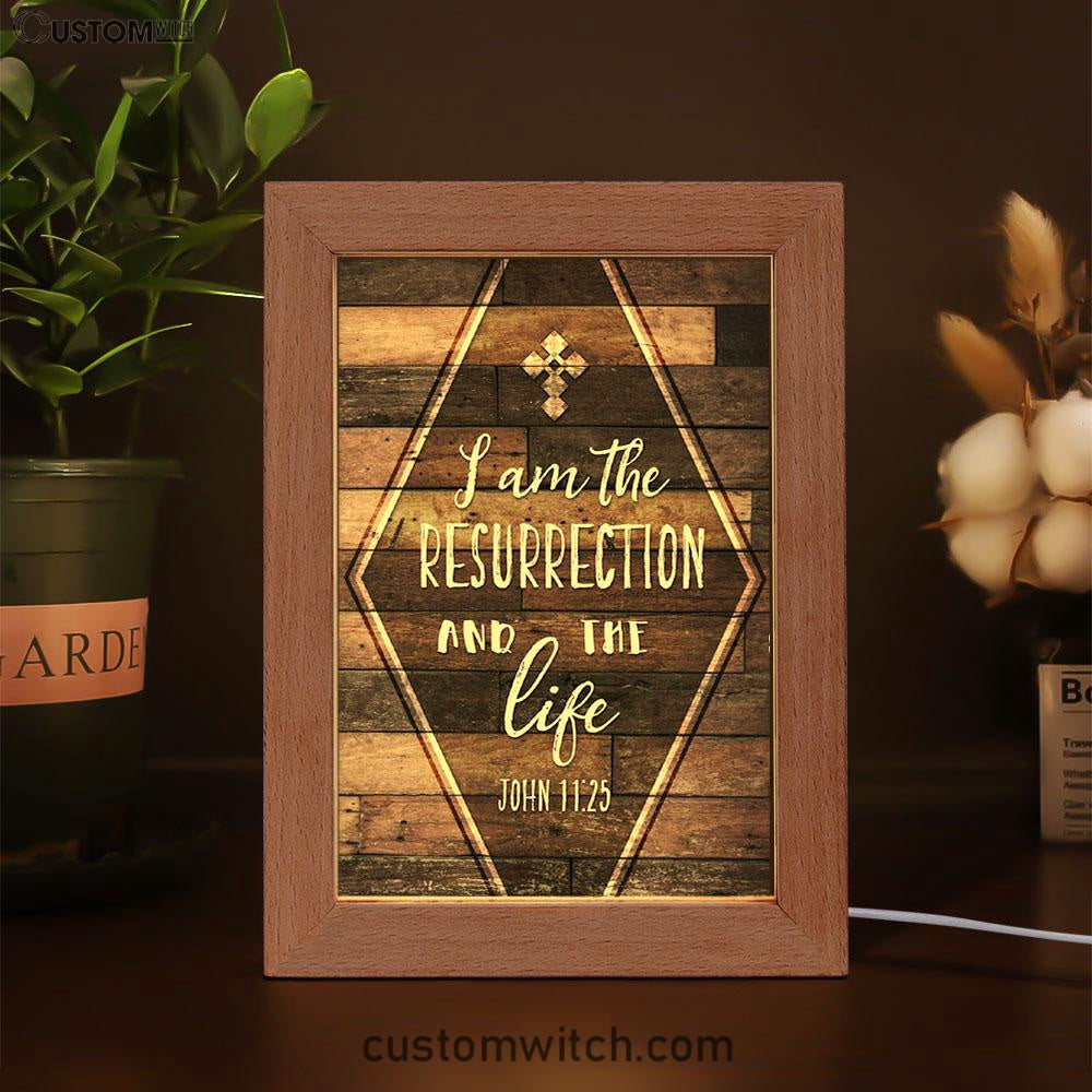 I Am The Resurrection And The Life John 1125 Frame Lamp Art - Christian Night Light - Religious Decor