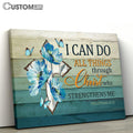 I Can Do All Things Through Christ Cross Blue Butterfly Wall Art Canvas - Christian Wall Art - Religious Art