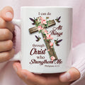 I Can Do All Things Through Christ, Cross With Flowers, Coffee Mug, Christian Mug, Bible Mug, Faith Gift, Encouragement Gift