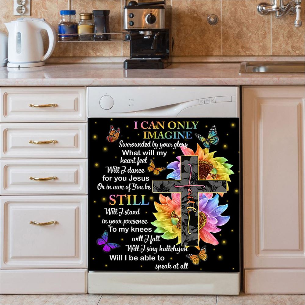 I Can Only Imagine Daisy Flower Hummingbird Dishwasher Cover, Bible Verse Dishwasher Stickers, Christian Inspirational Kitchen Decor