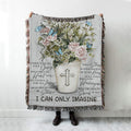 I Can Only Imagine Flower Cross Butterfly Woven Throw Blanket - Christian Throw Blanket Decor - Religious Woven Blanket Prints