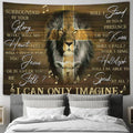 I Can Only Imagine Lion & Lamb & Cross Tapestry Wall Art - Bible Verse Wall Art - Christian Home Decor