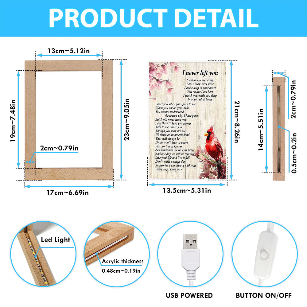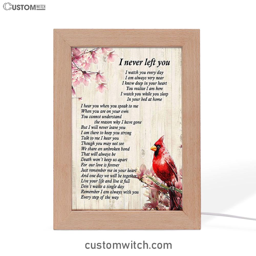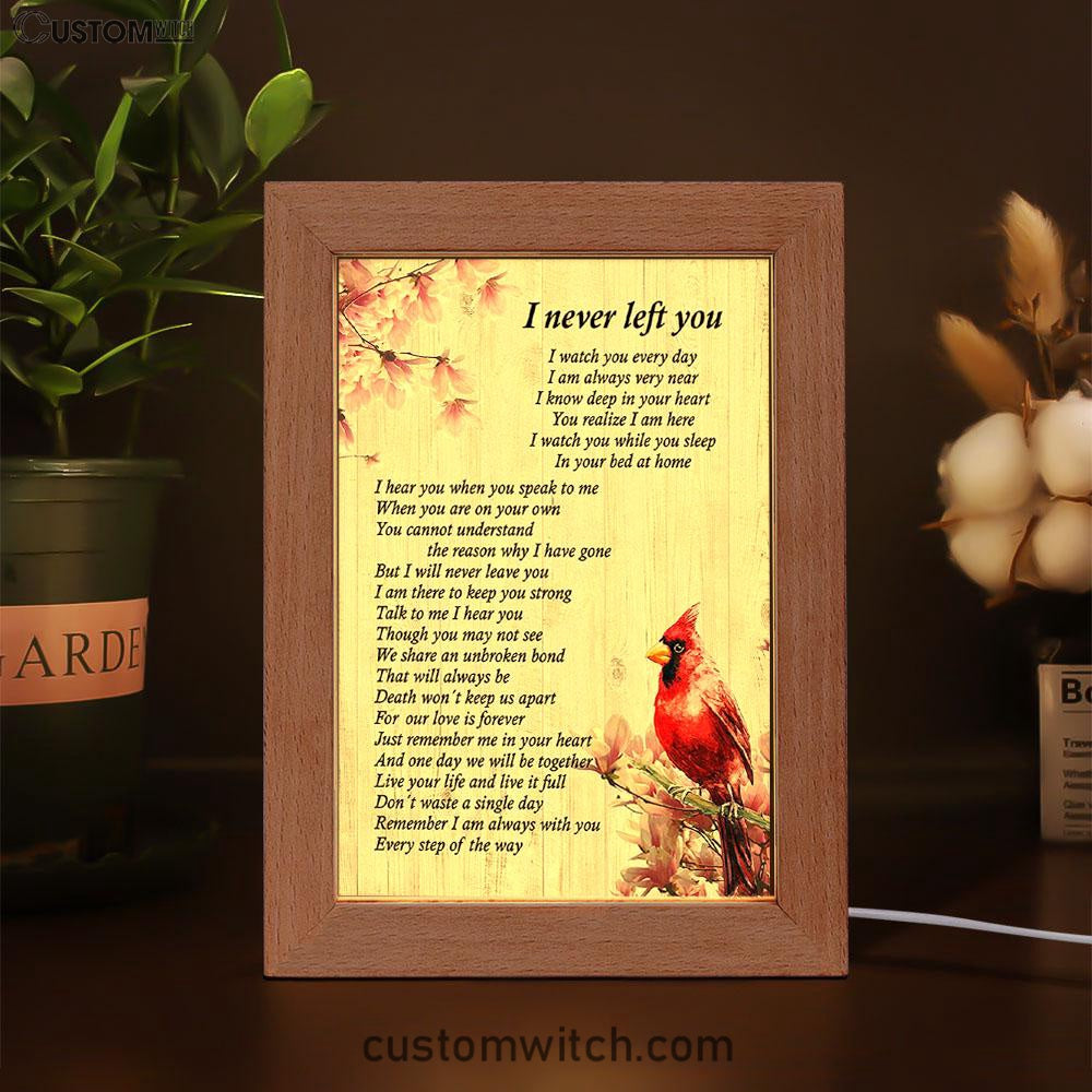 I Never Left You Red Cardinal Frame Lamp Art - Christian Night Light Decor