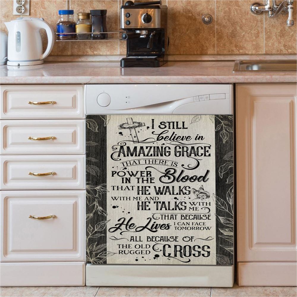 I Still Believe In Amazing Grace That There Is Power In The Blood All Because Of The Old Rugged Cross Christian Dishwasher Cover