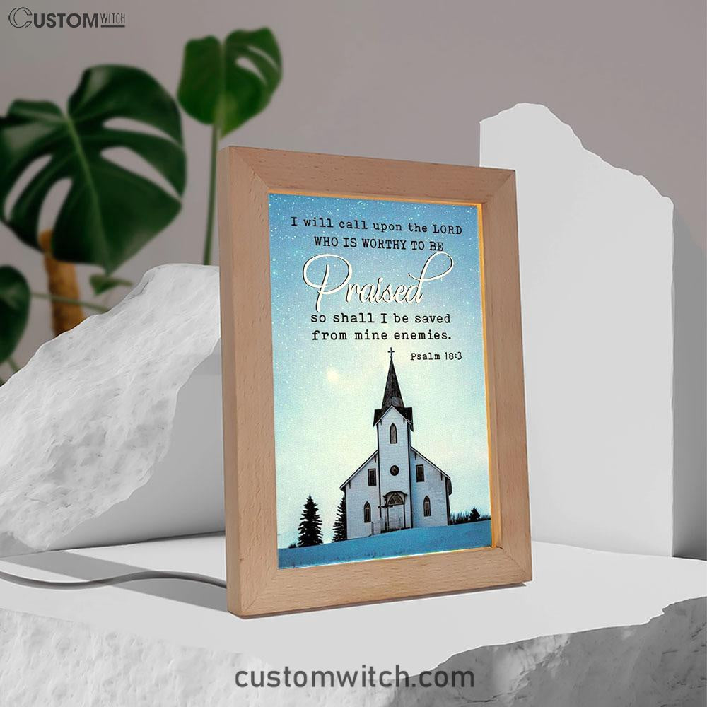 I Will Call Upon The Lord Country Church Frame Lamp Art - Christian Night Light - Religious Decor