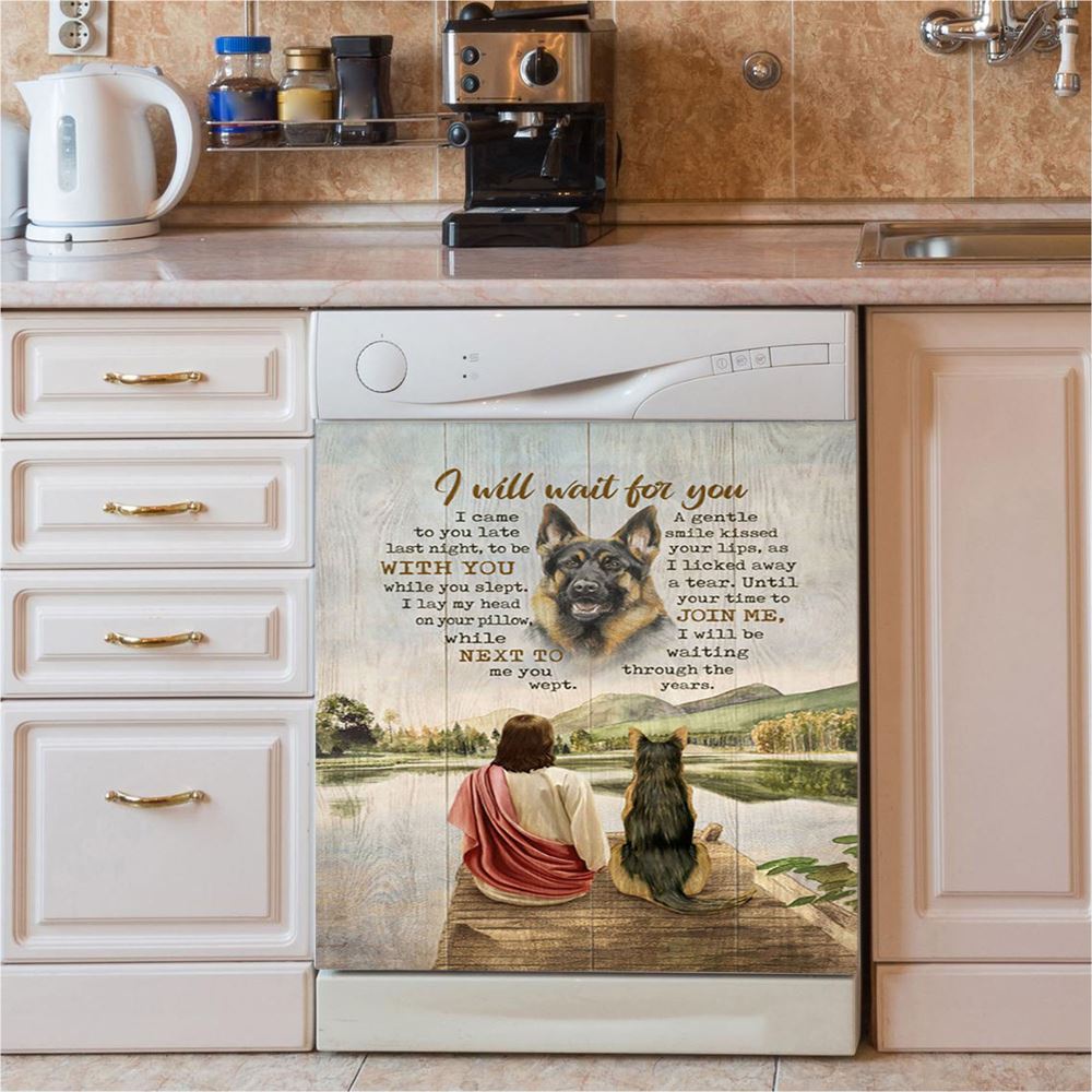 I Will Wait For You Dishwasher Cover, German Shepherd And Jesus Dishwasher Stickers, Bible Verse Kitchen Decor