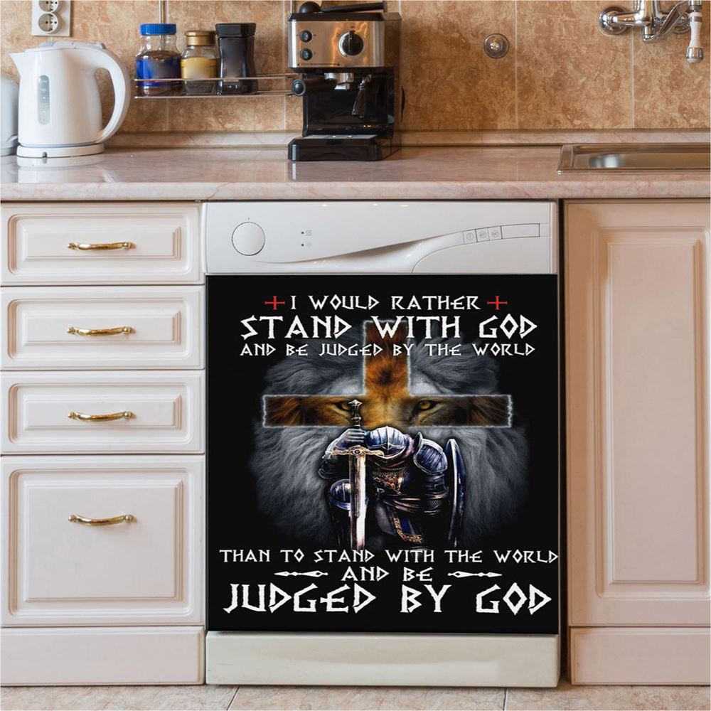 I Would Rather Stand With God Dishwasher Cover, Lion Of Judah Cross Warrior Dishwasher Stickers, Bible Verse Kitchen Decor
