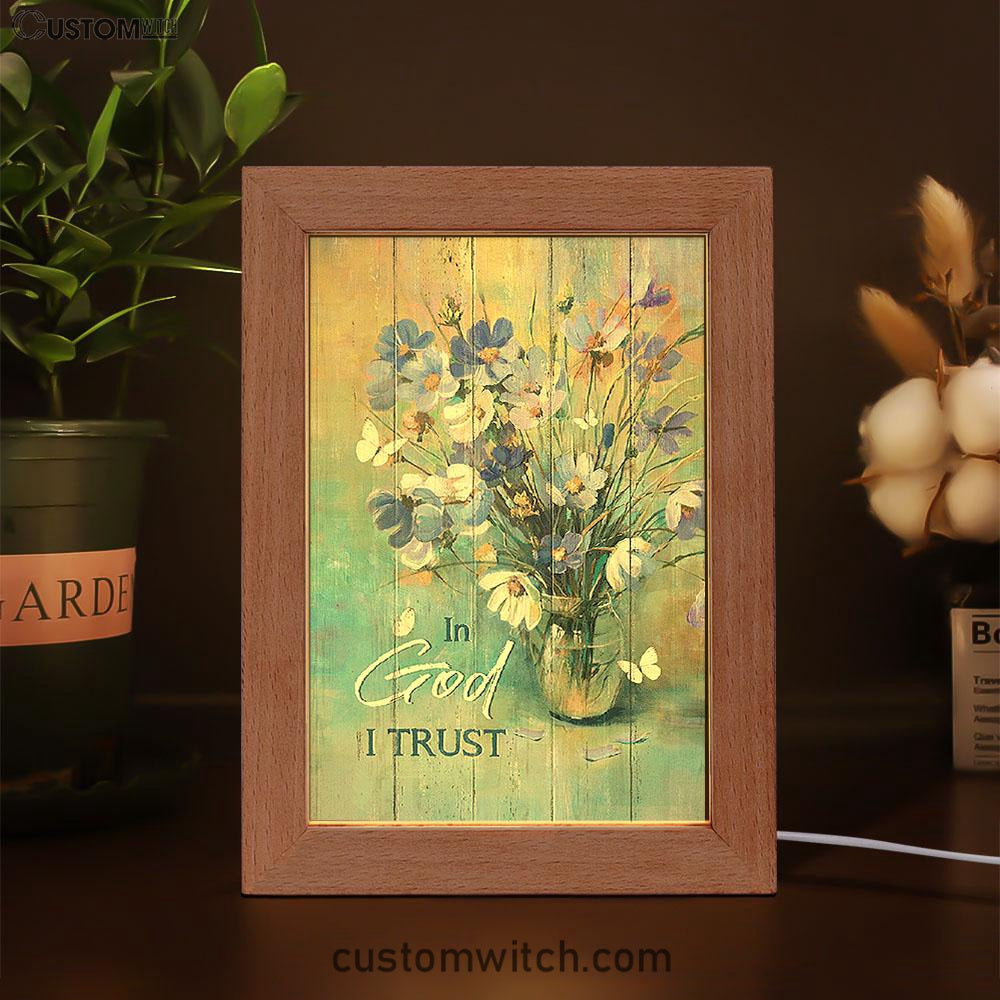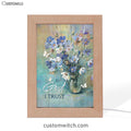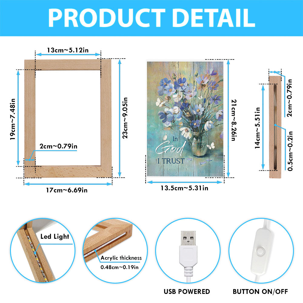 In God I Trust Blue Delicate Flower Frame Lamp - Christian Art - Religious Home Decor