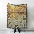 In The Morning When I Rise Dandelion White Butterfly Woven Throw Blanket - Christian Throw Blanket Decor - Religious Woven Blanket Prints
