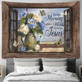 In The Morning When I Rise Hydrangea Flower Butterfly Large Tapestry Art - Christian Wall Decor - Religious Wall Decor