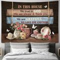 In This House We Trust In God Tea Cup White Butterfly Tapestry Art - Bible Verse Wall Art - Wall Decor Christian
