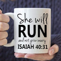 Isaiah 4031 She Will Run And Not Grow Weary, Bible Verse Coffee Mug, Christian Mug, Bible Mug, Faith Gift, Encouragement Gift