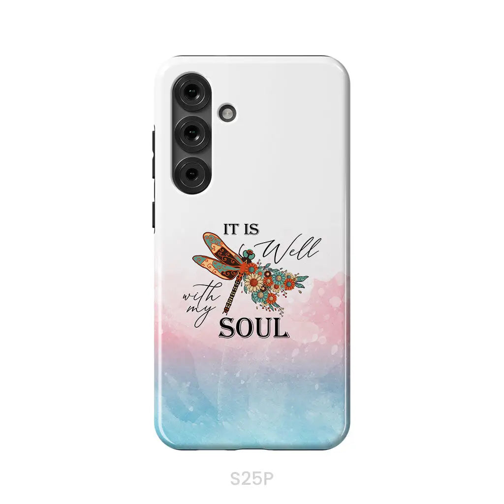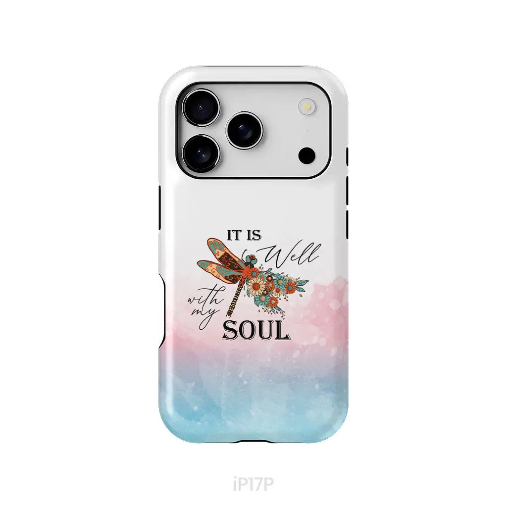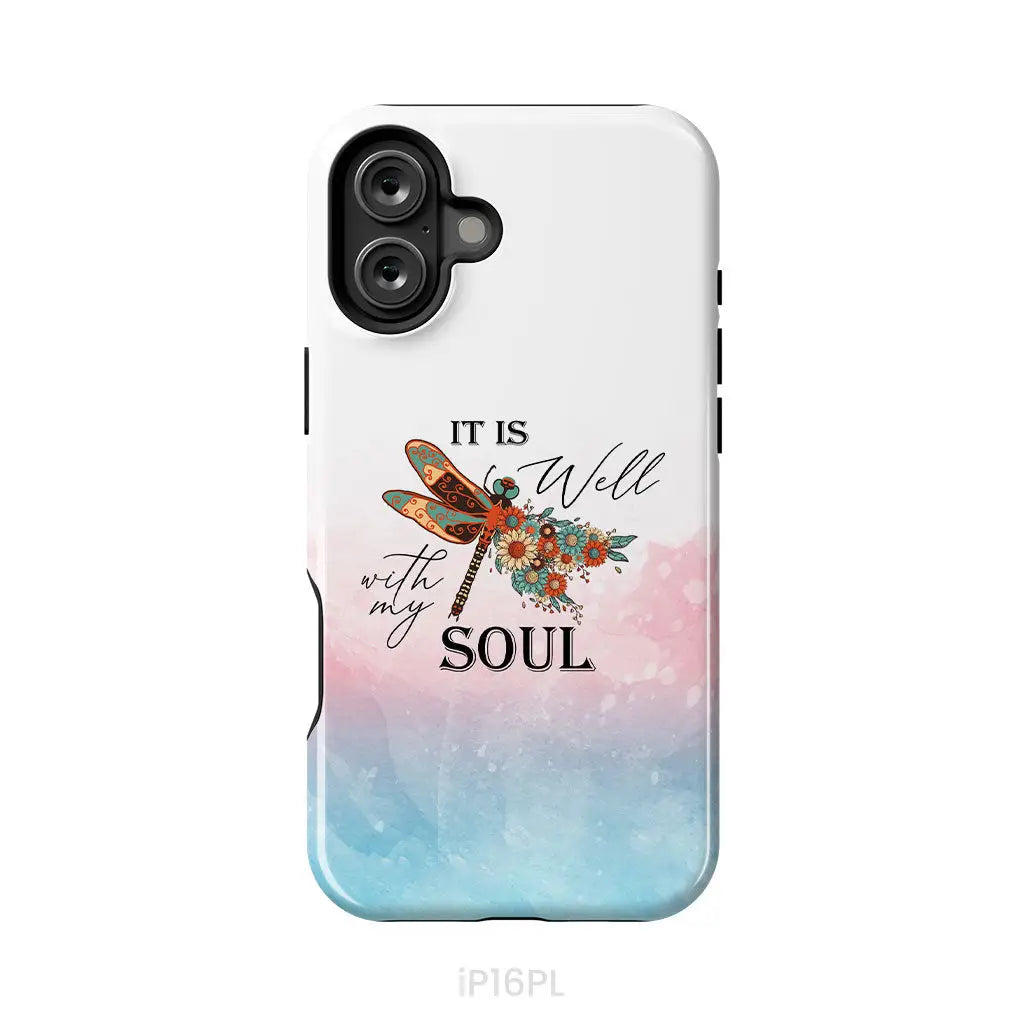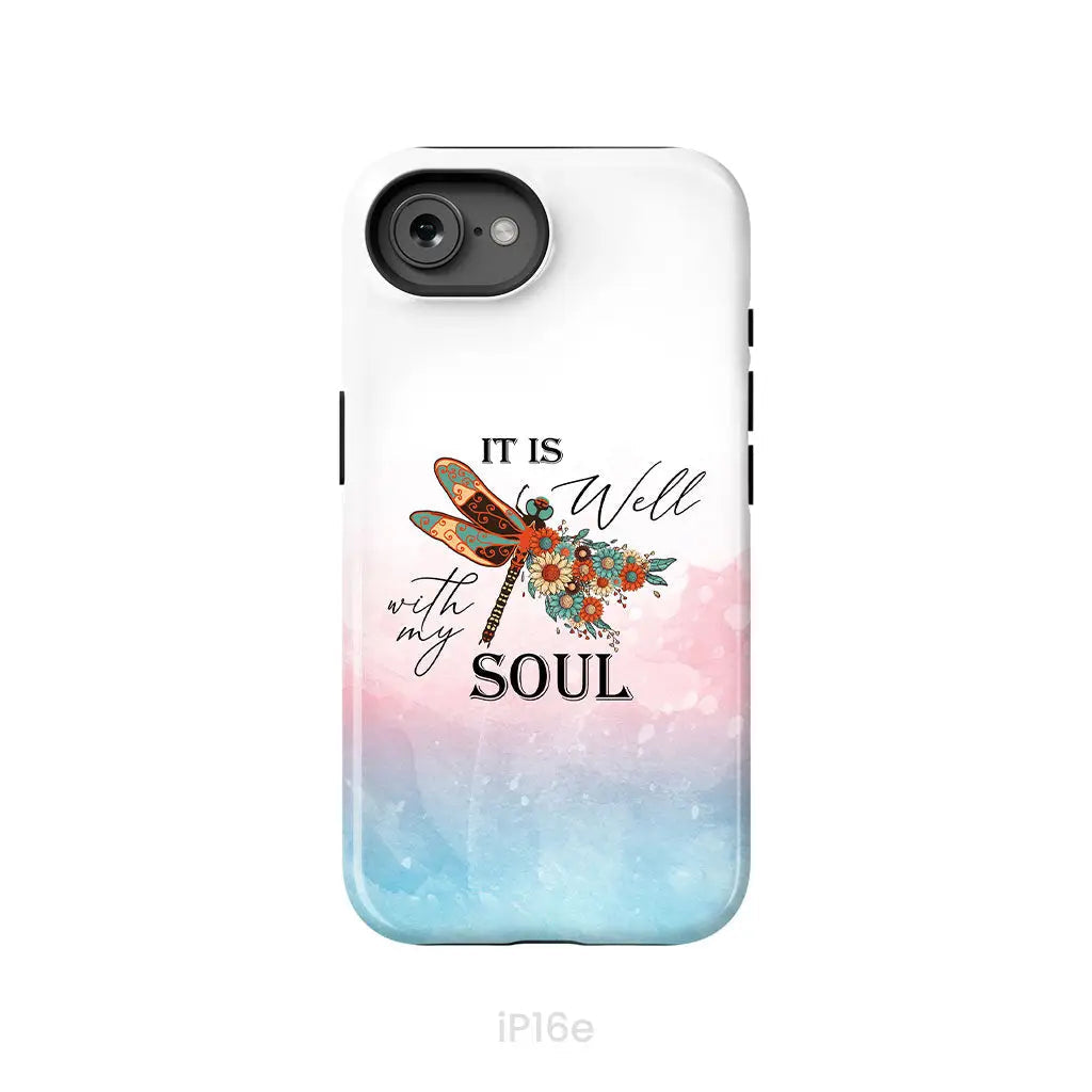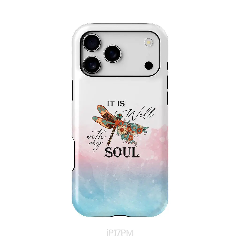 Christian Phone Case, It Is Well With My Soul, Dragonfly Flowers